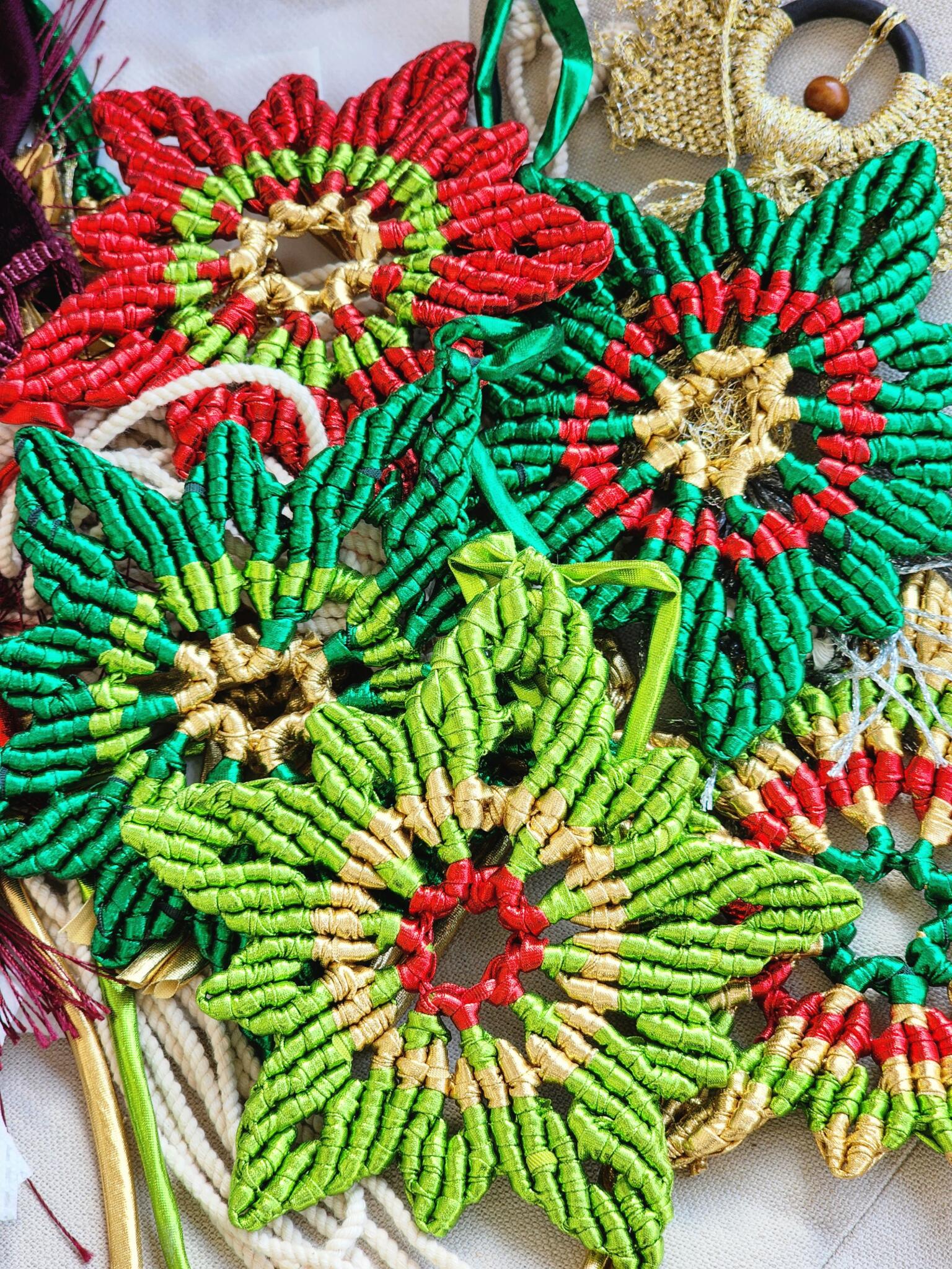 Materials: red , light green and gold ropes.
