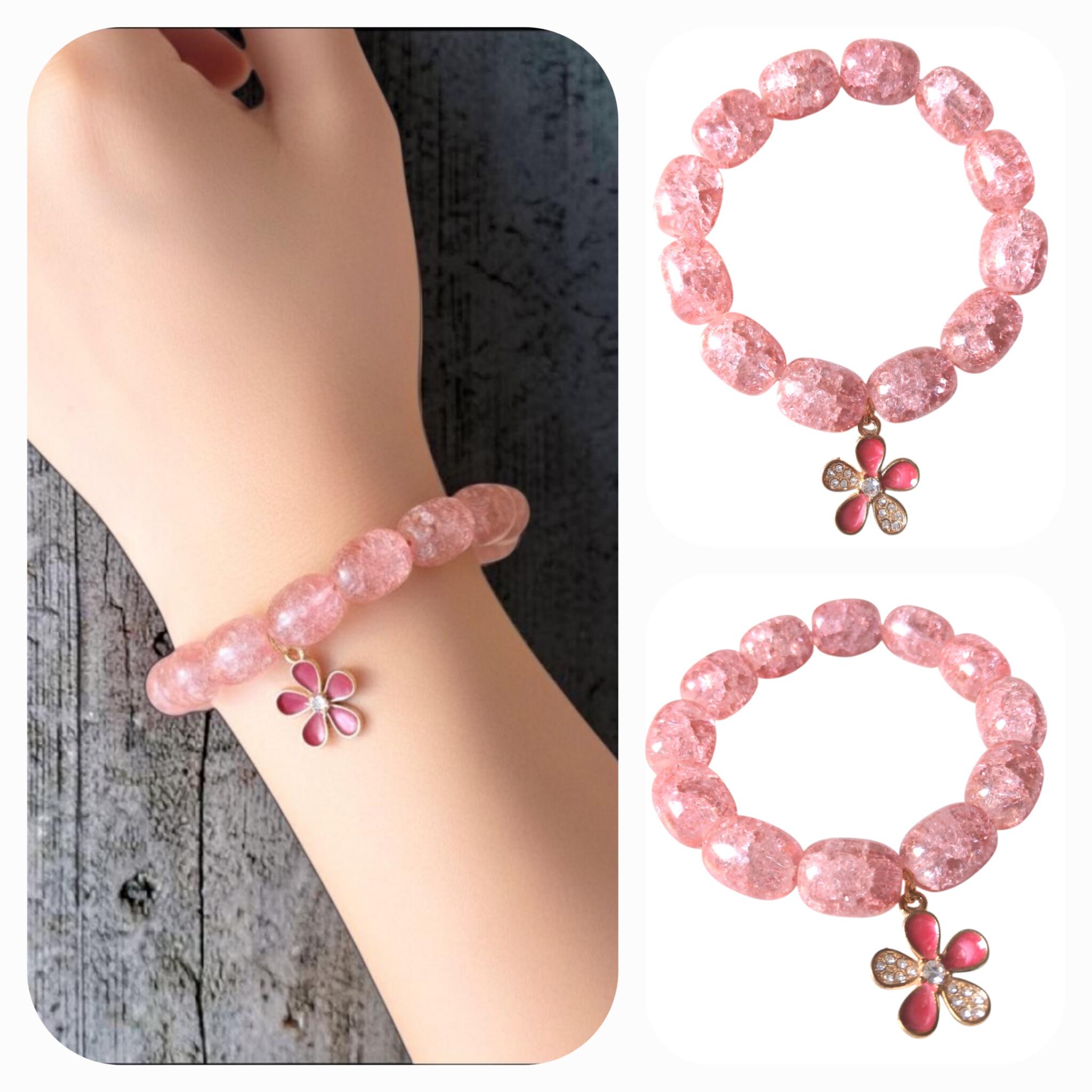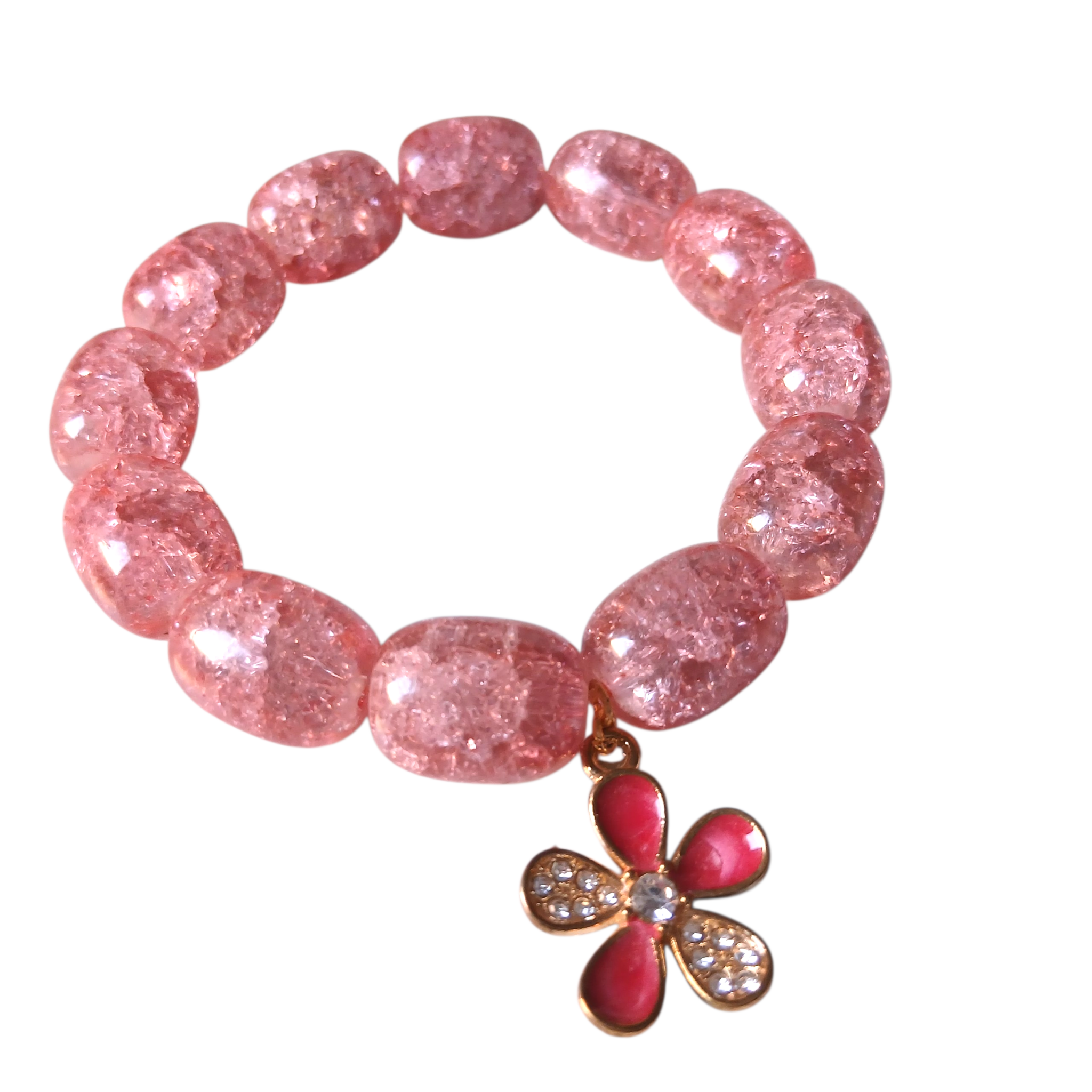 A bracelet made of red sugar crumbs beads with a pendant in shape of a flower with tiny zircon stones