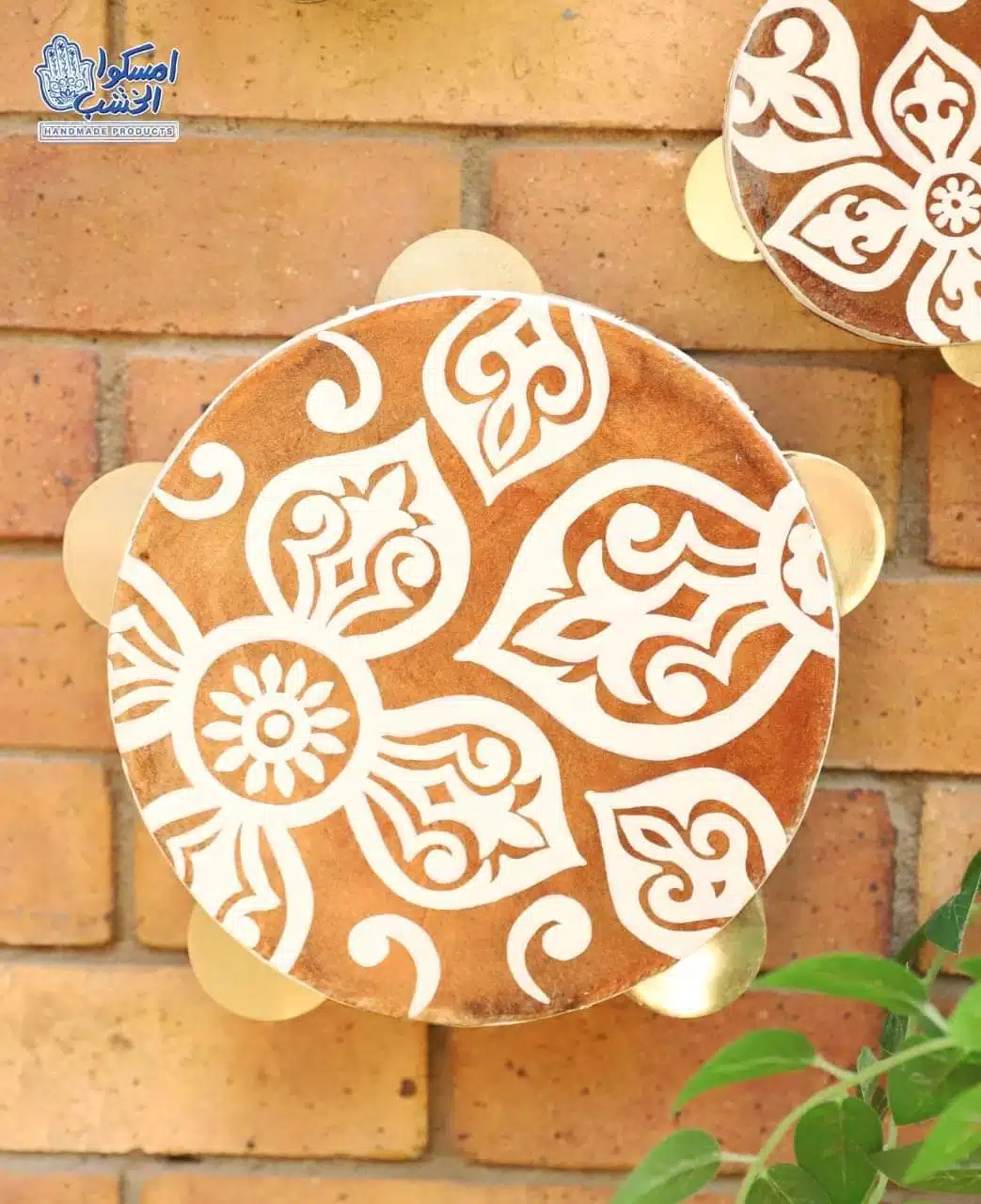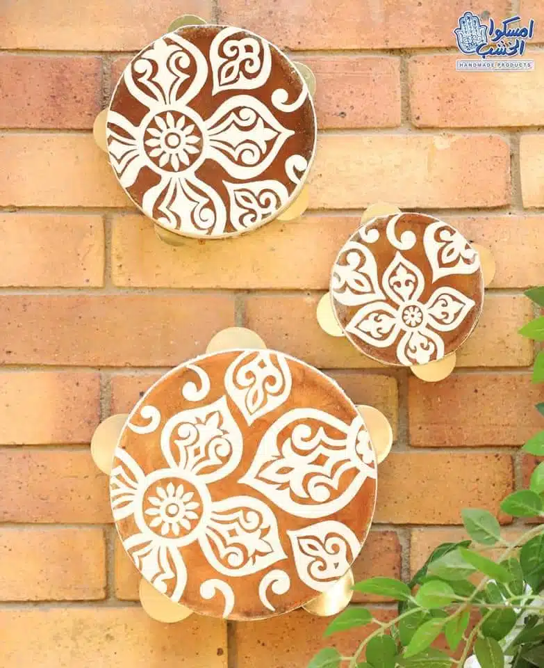 Material : natural wood and leather hand  painted with acrylic colors