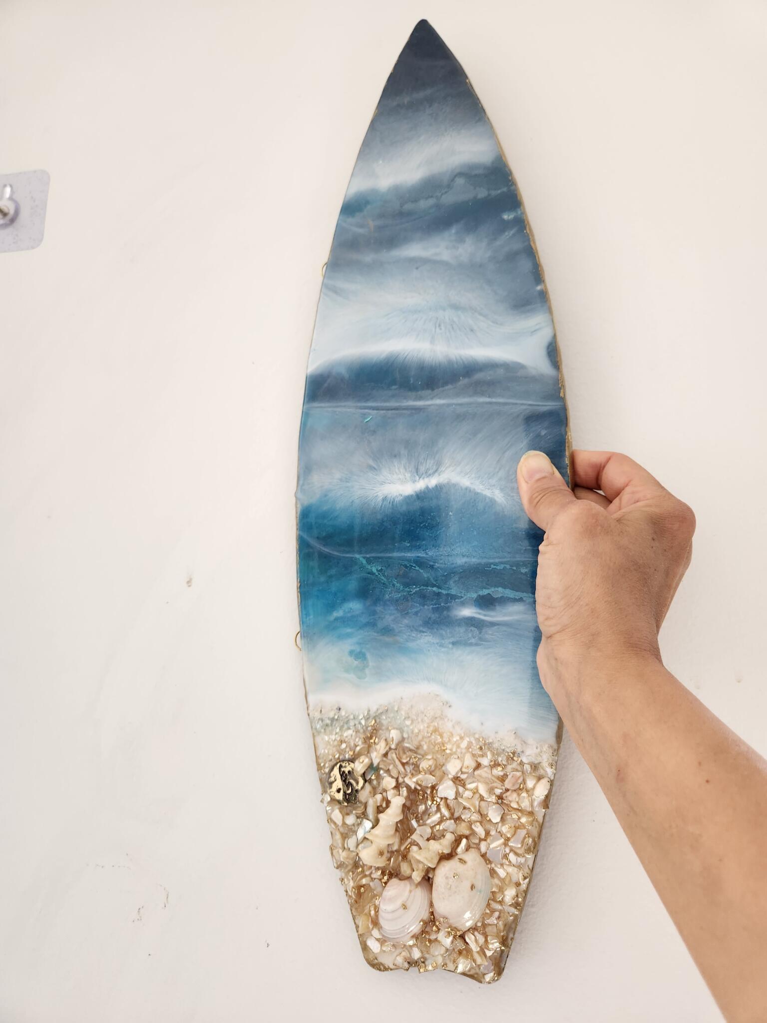 100% handmade hanging wall piece of art.. Surfing Board for vacation homes..