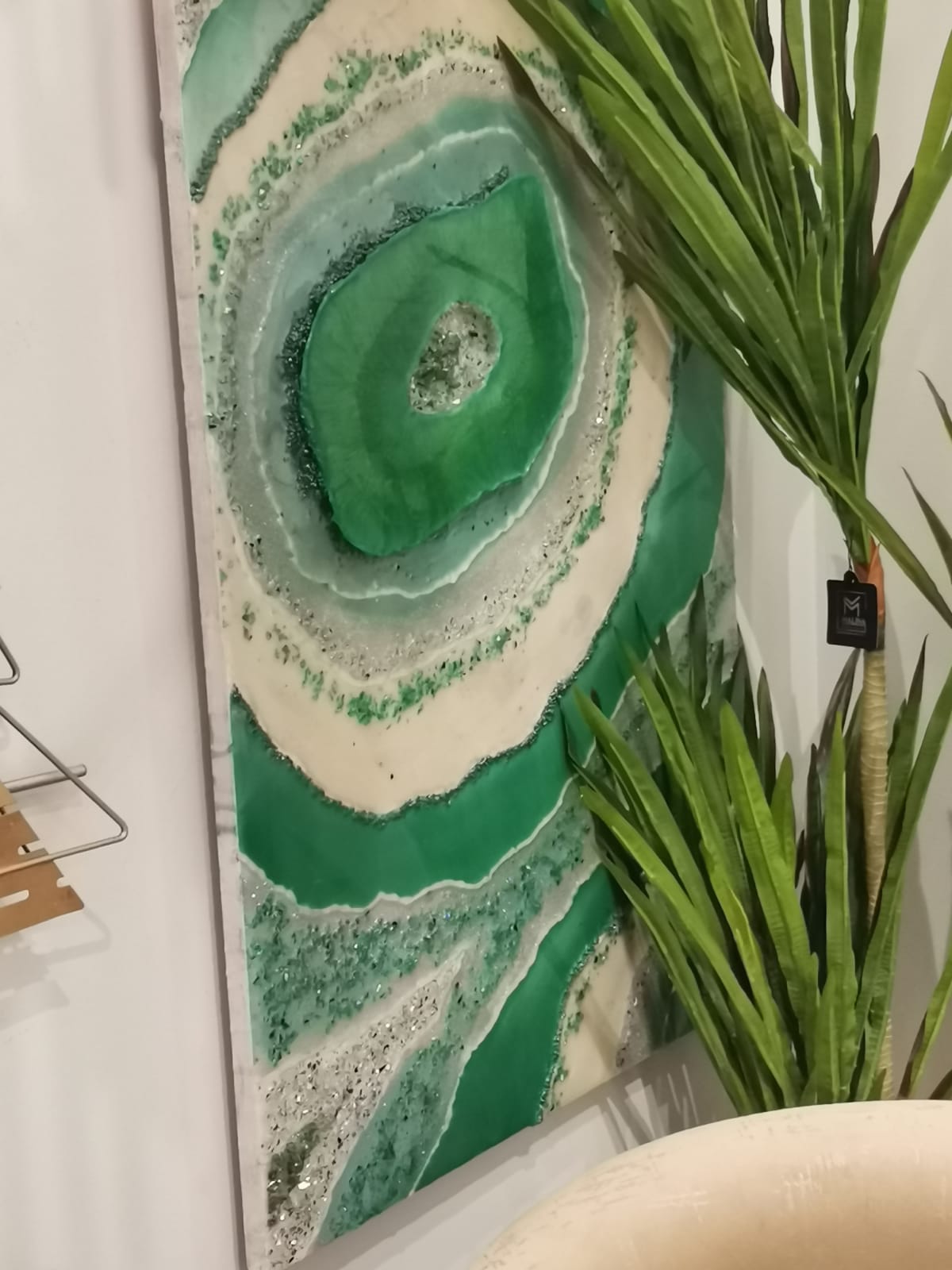 Transform your space with this unique resin masterpiece, handcrafted on premium wood boards and framed with a special technique that ensures a secure and elegant wall display.
