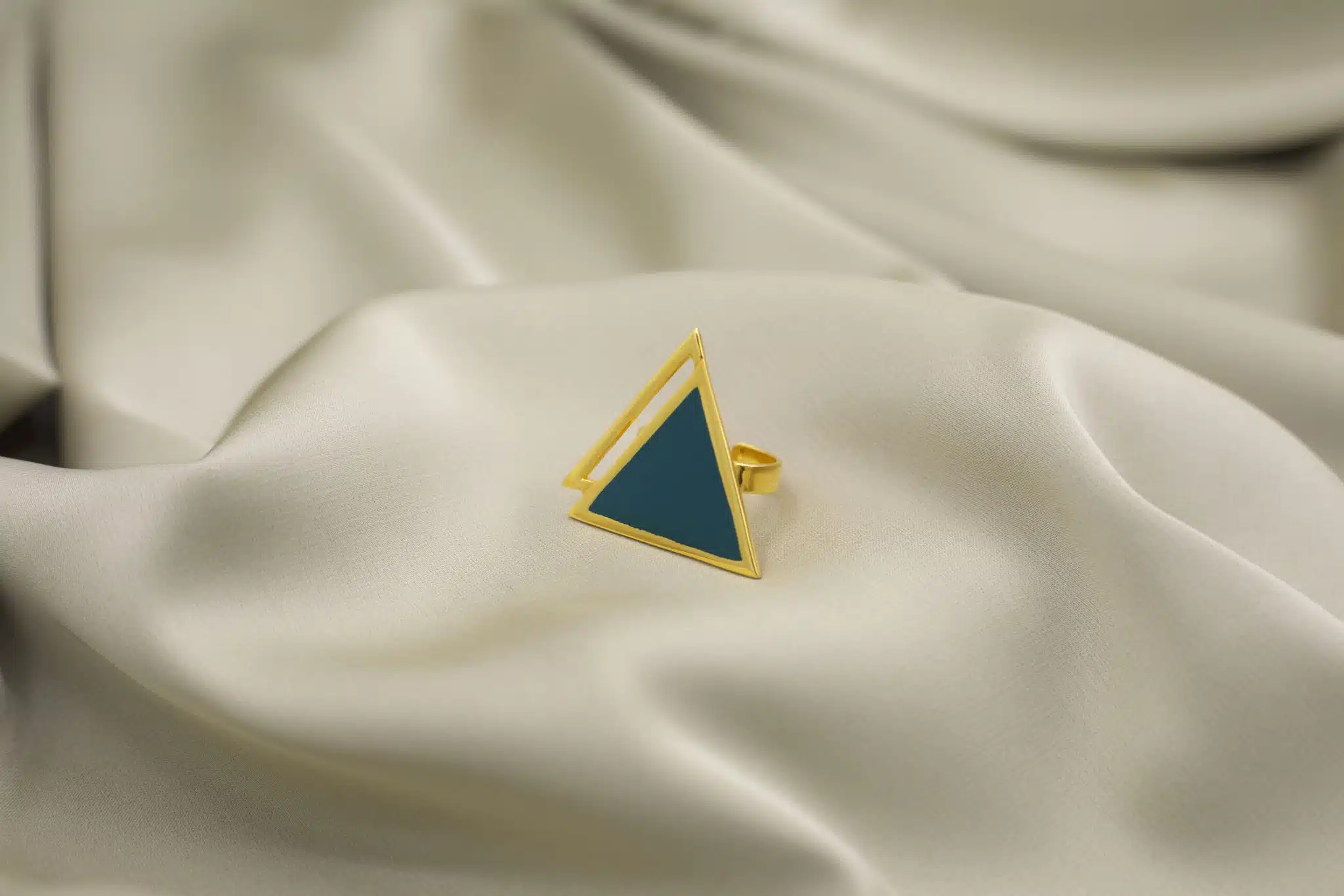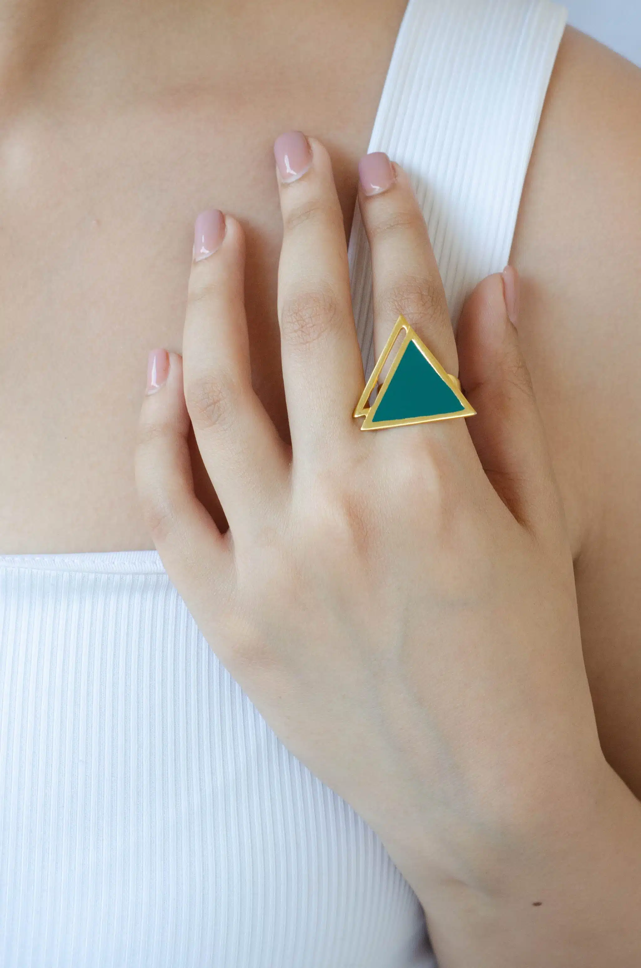 The Emerald Tuya ring , Inspired by The Great Egyptian Pyramids by the designer “Toka Nabil”. Material: Brass 21K Gold plated with a very high quality, hand made. Pre order will Take from 3-10 Days. No REFUND or EXCHANGE.