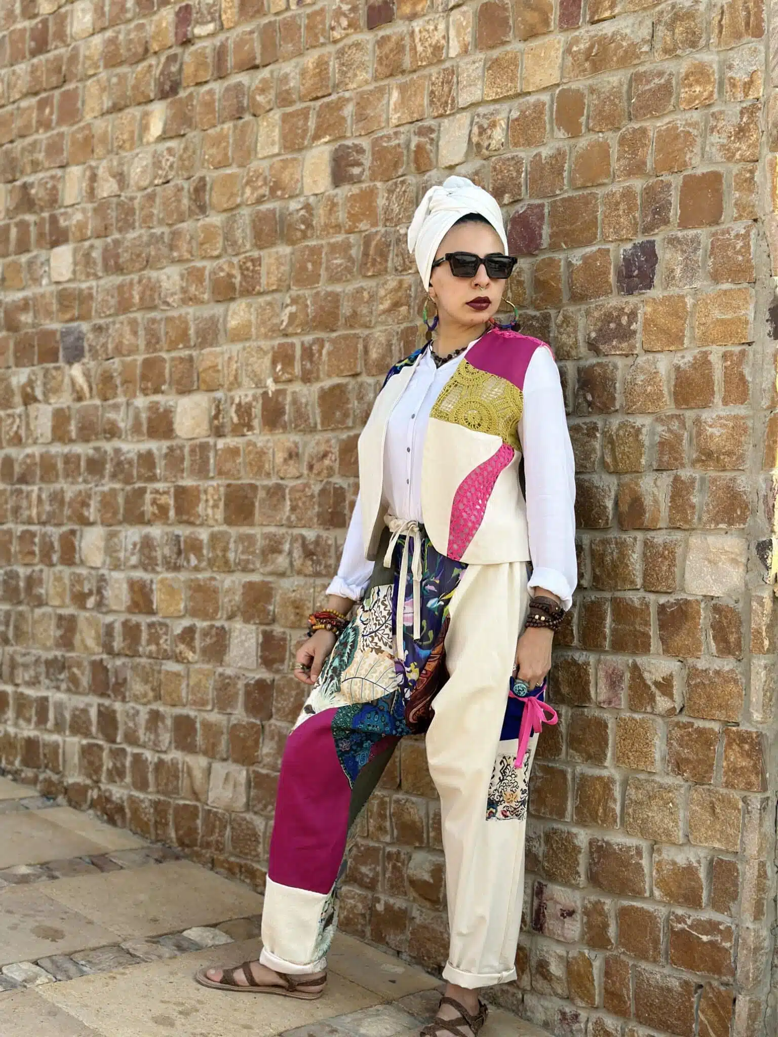 Composed of patches of different patterns for a boho look and feel.
