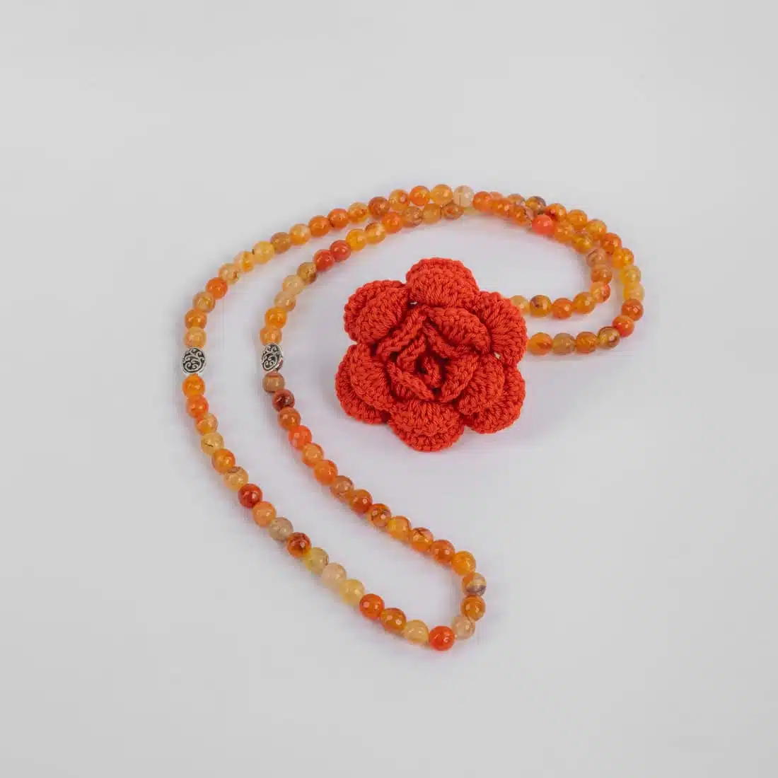 The flower is made of cotton yarn with a silk effect.