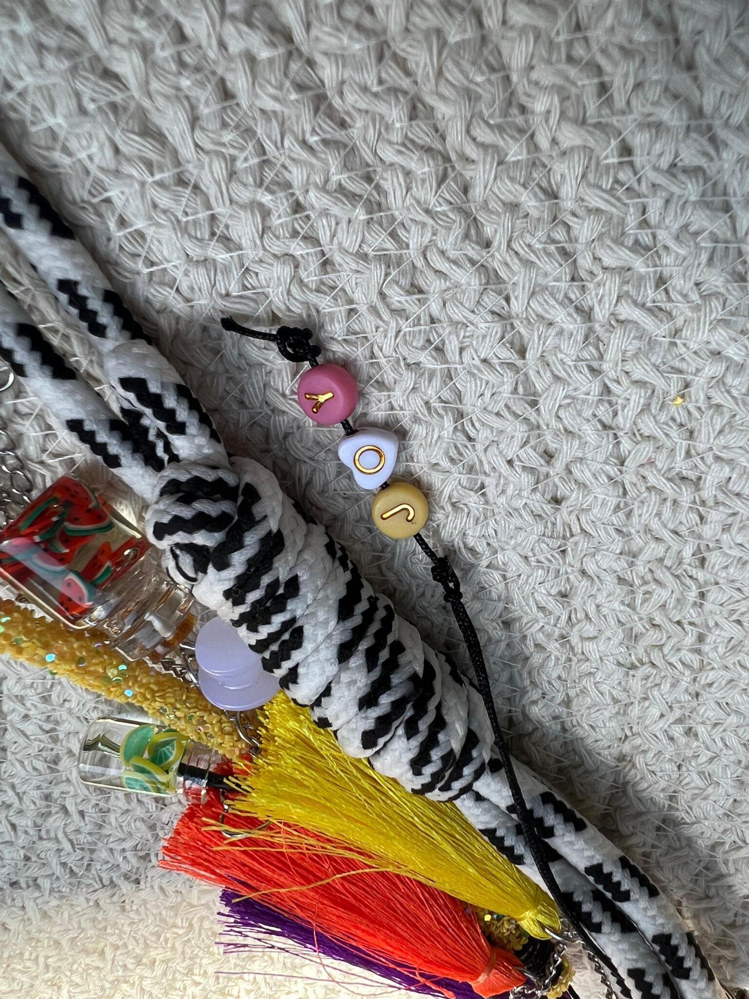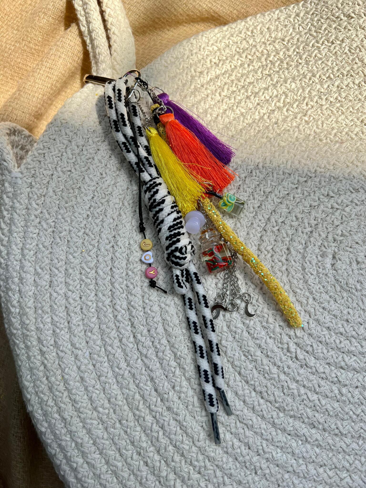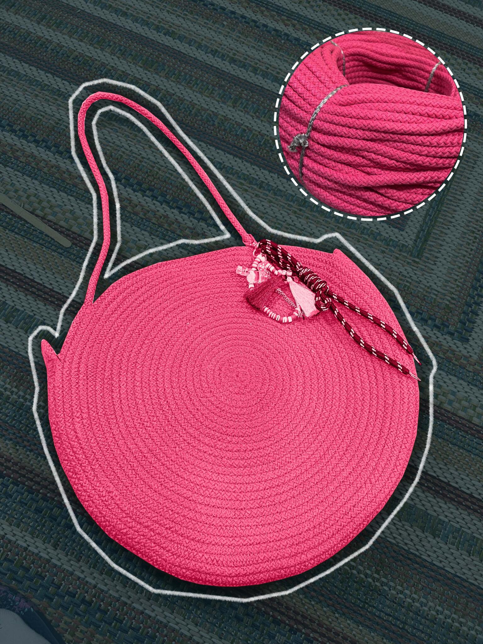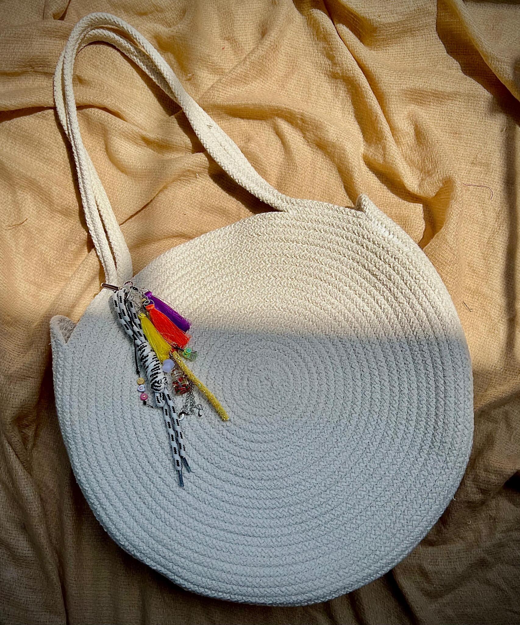 Round cotton bag 38cm wide with playful colorful charm