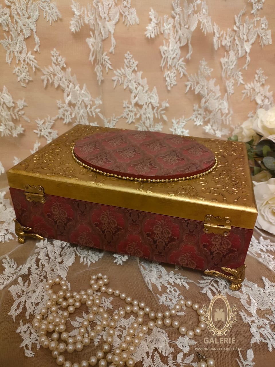 royal burgundy & gold jewelry box