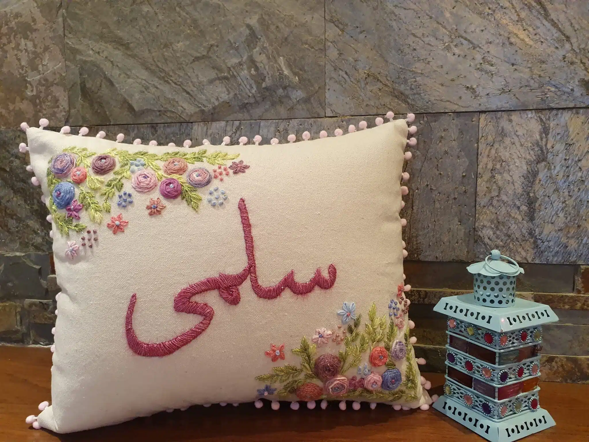 Handmade embroidery cushion 50×40 CM Customized with name .
