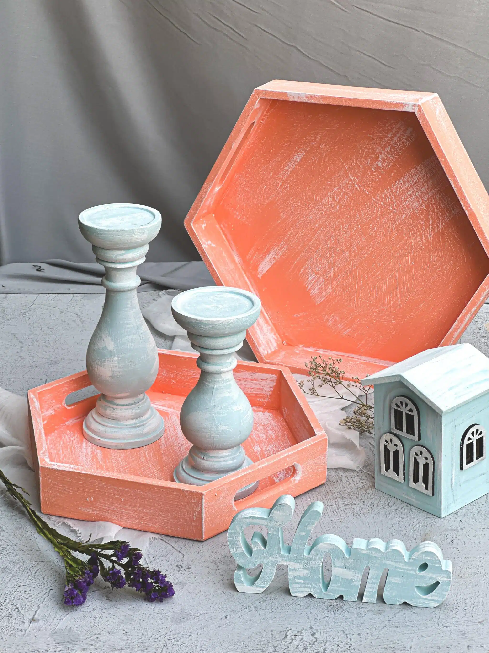 the price only includes the two wooden trays. the decorative pieces is not included in the price.