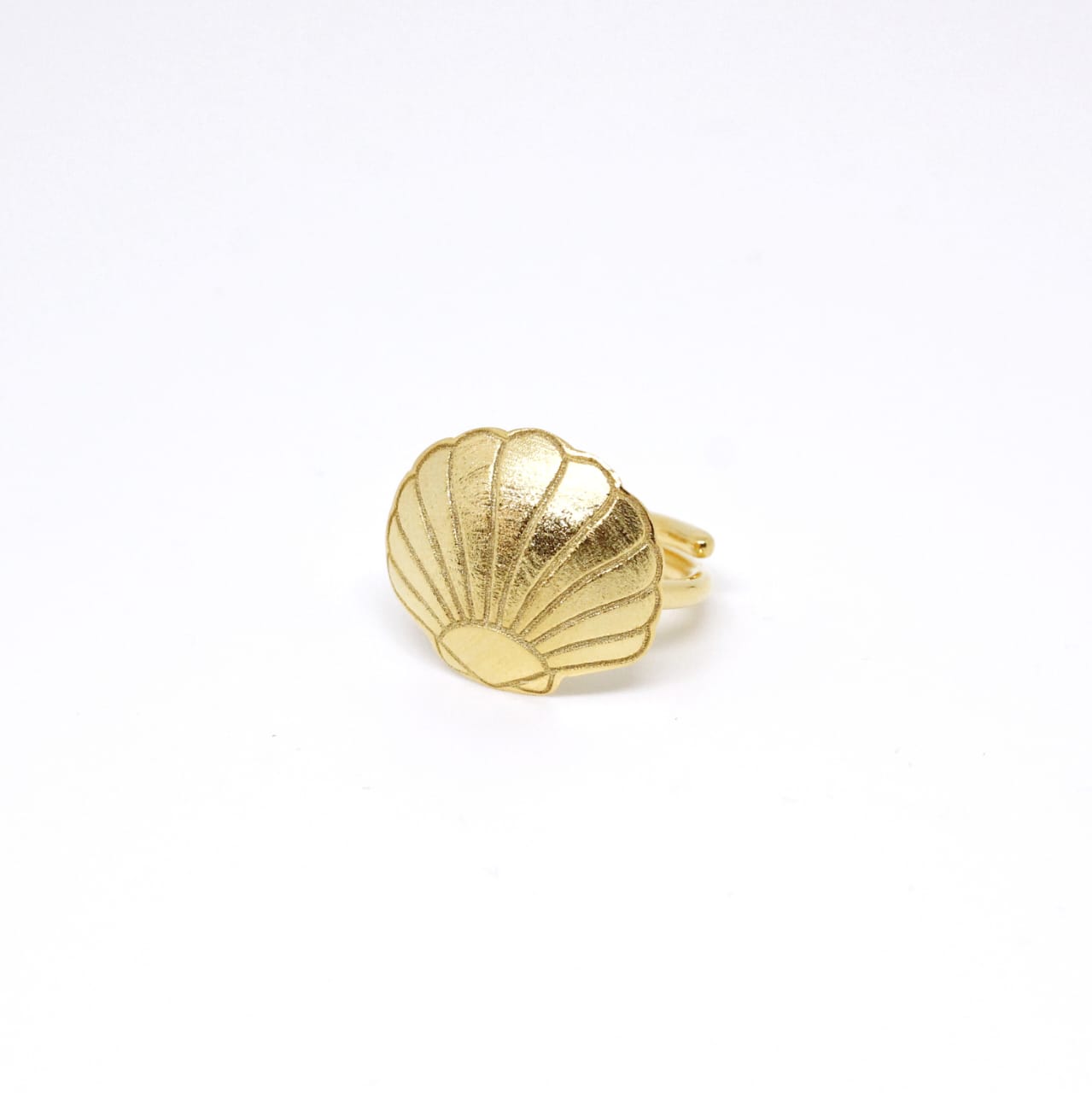 خاتم مستوحي من صدفات البحر علي رمال الشاطئ به نقش خفيف لأحساس طبيعة الصدفة