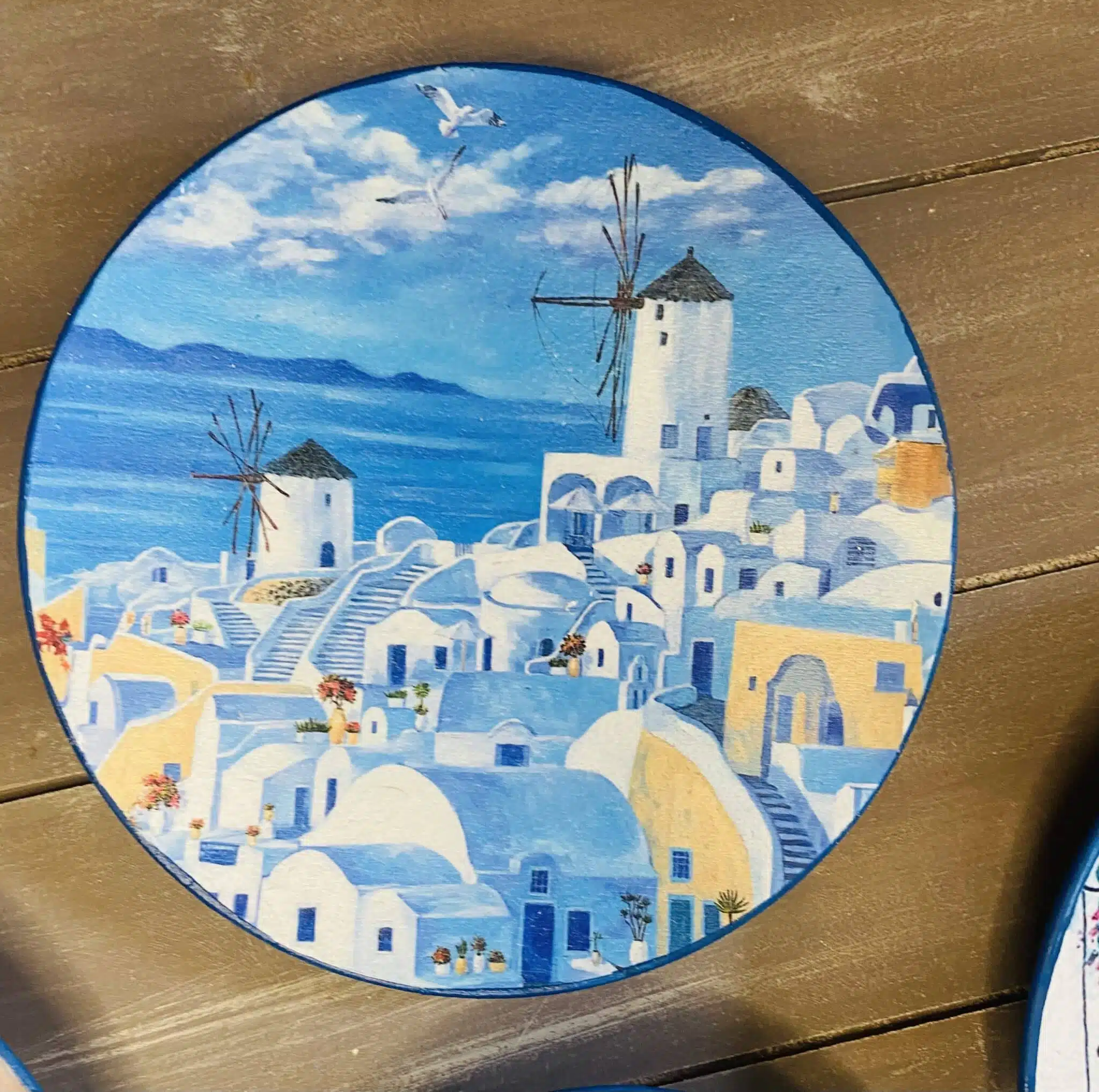 Decoupaged wall plates collection in Santorini theme