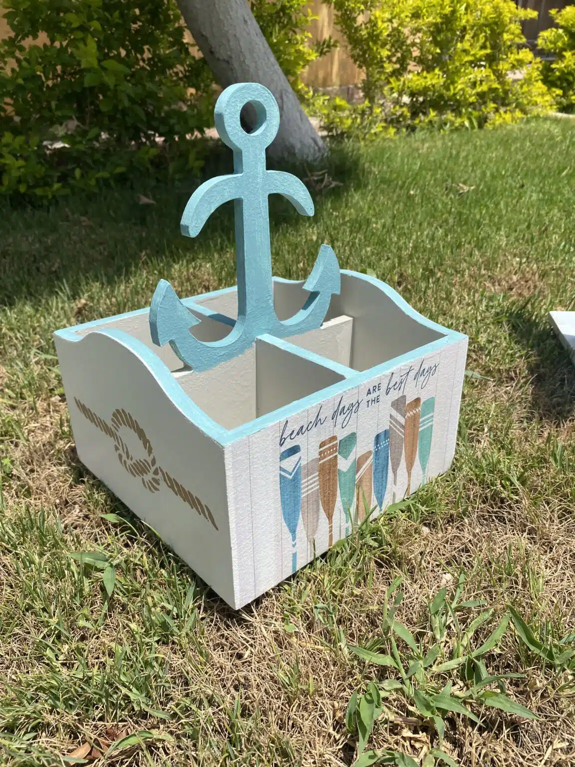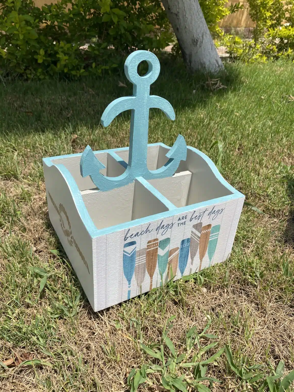 Wooden cutlery organizer in summer theme