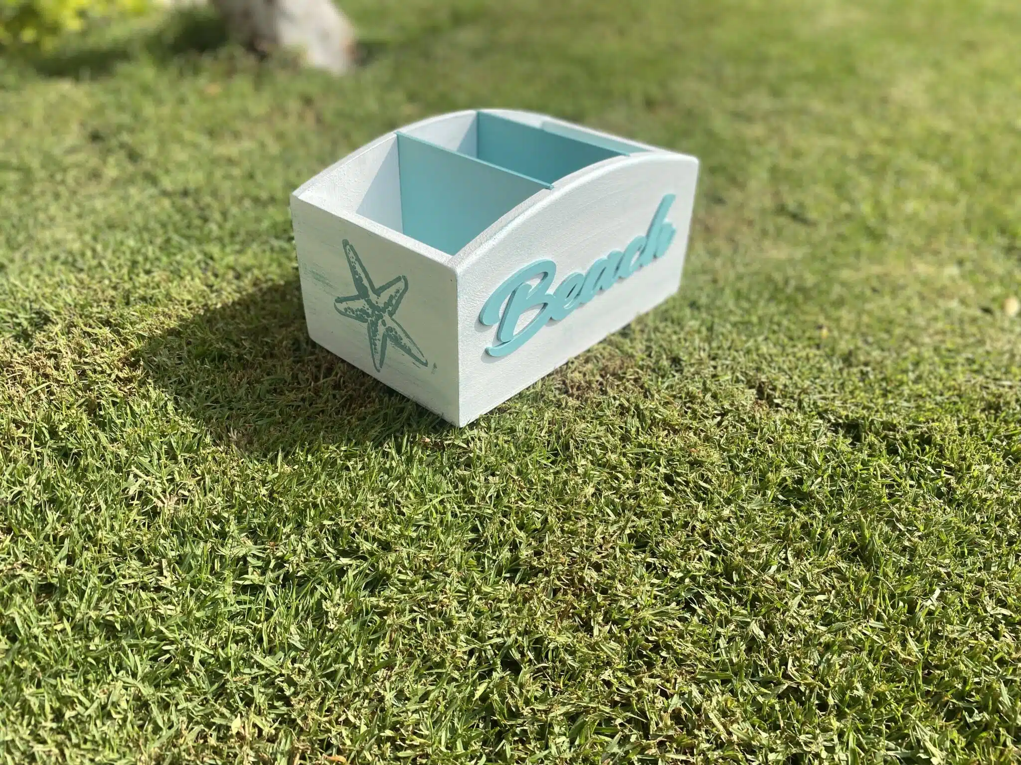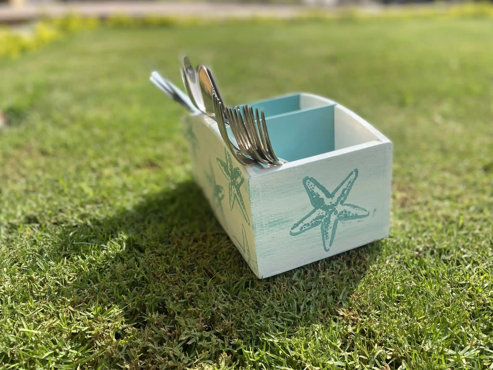 Wooden Sea Blue Cutlery Organizer with Beach Sign