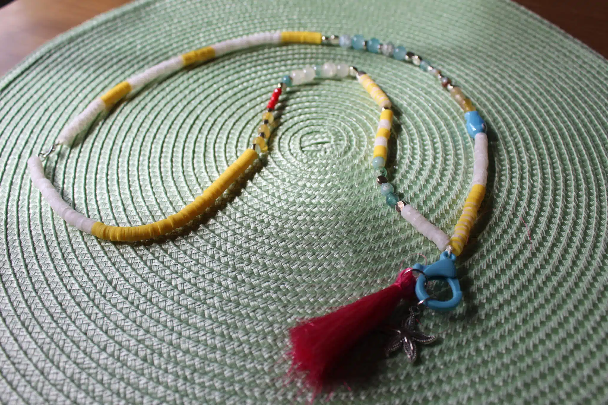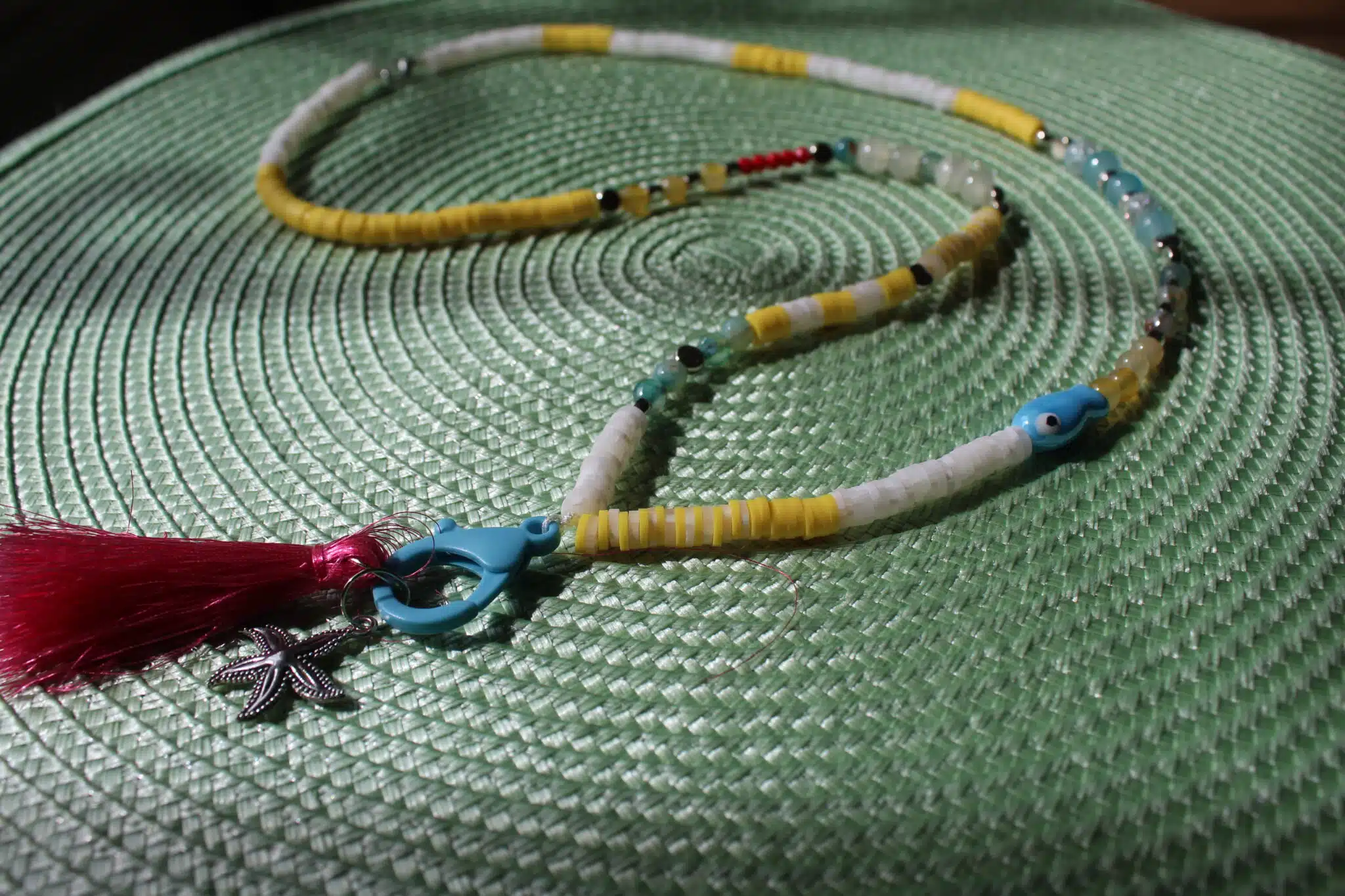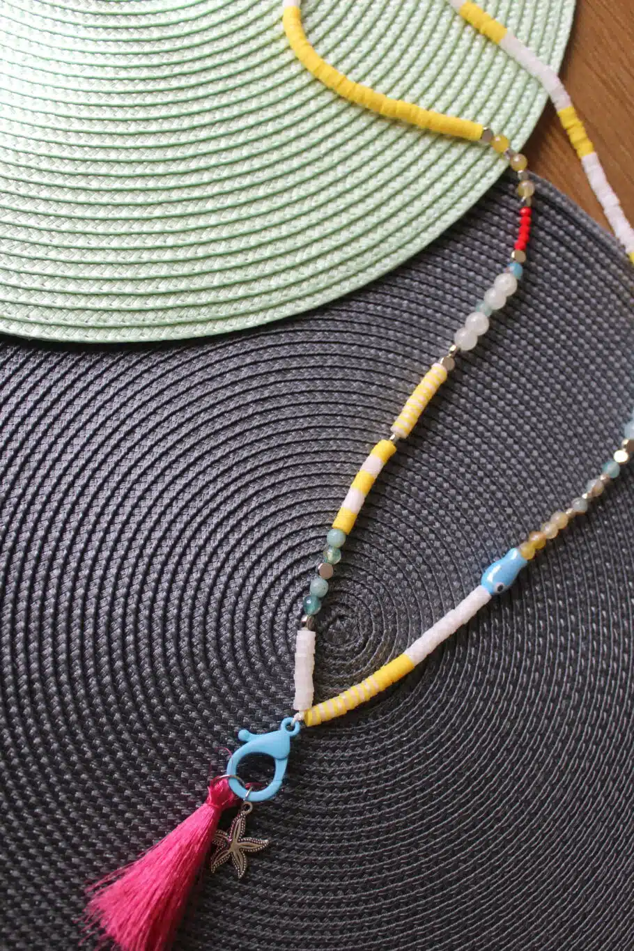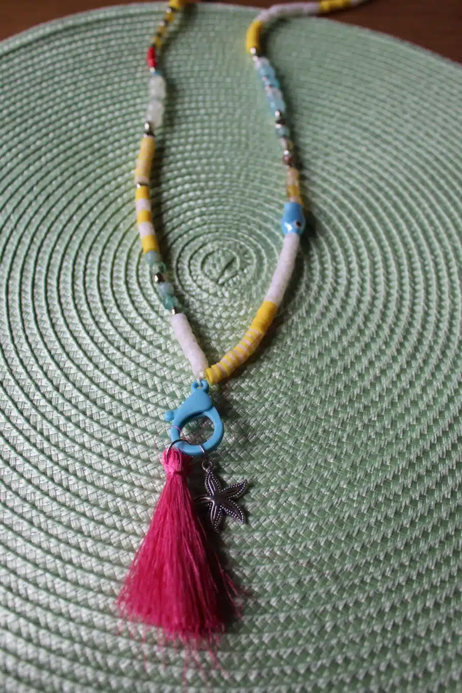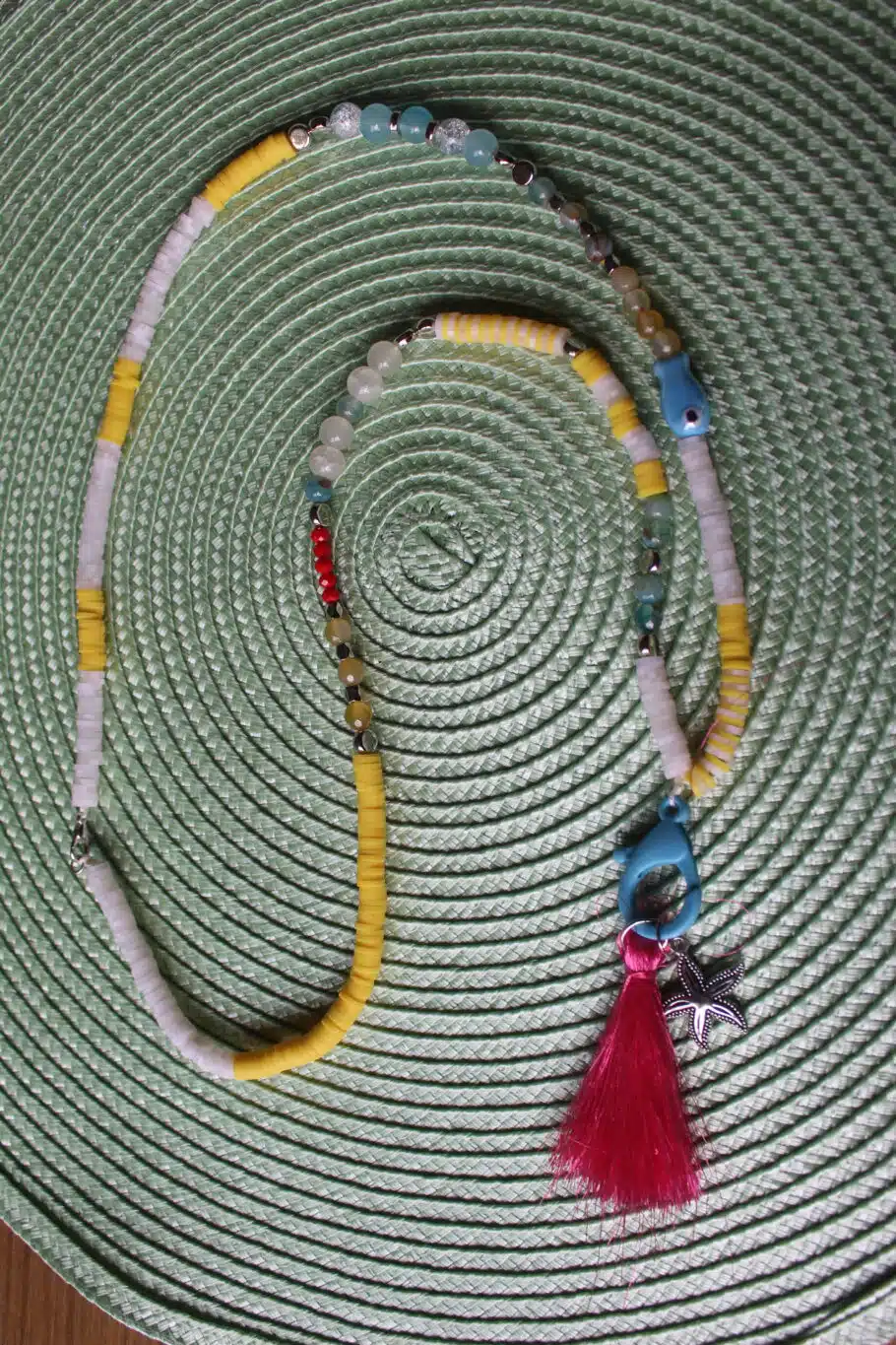 Long Necklace in mix of yellow & blue shades and dangling Lock & Sea-star charm