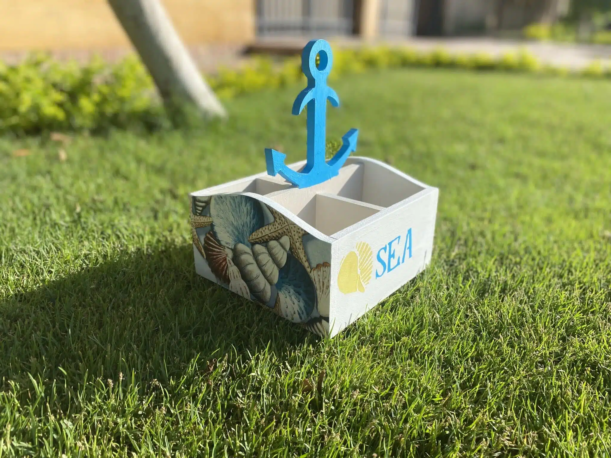 Wooden Summer Cutlery Organize with sea shells and anchor design
