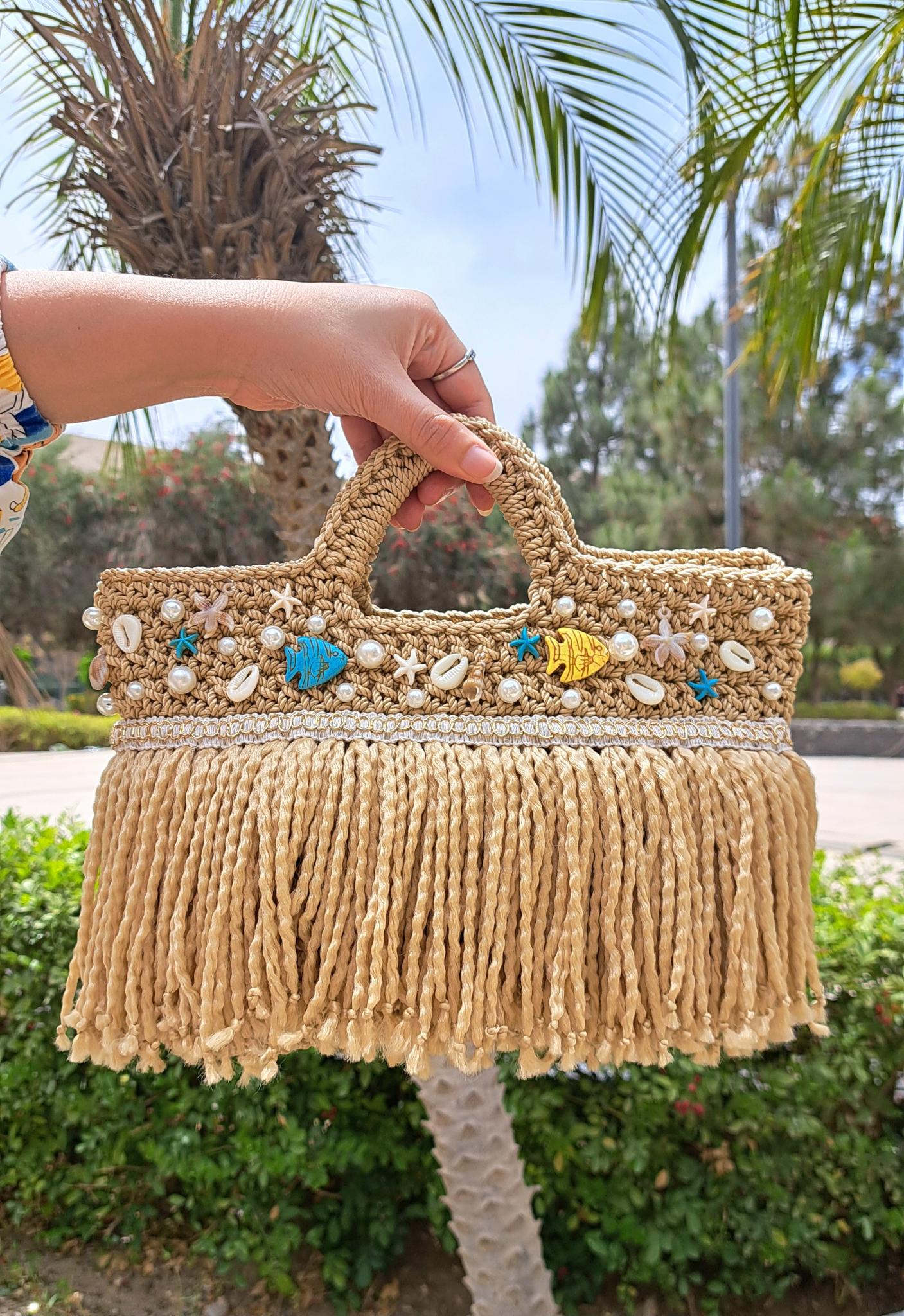 Handmade macramé beach bags.