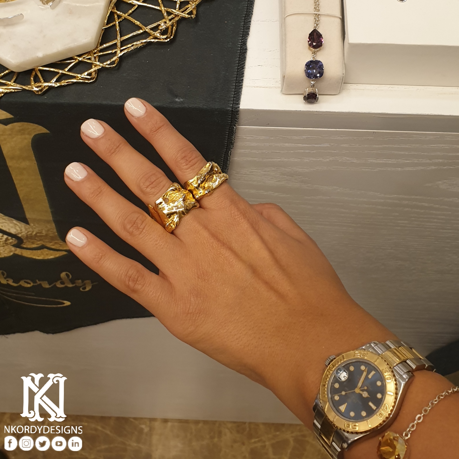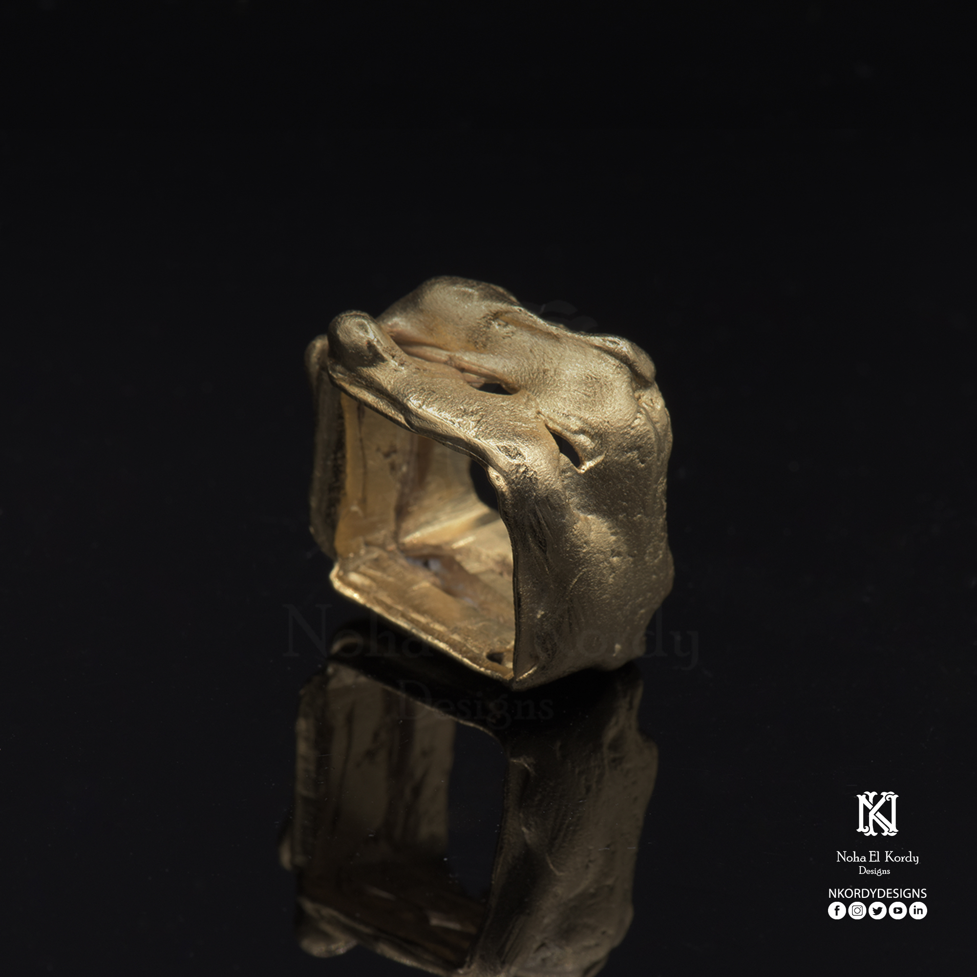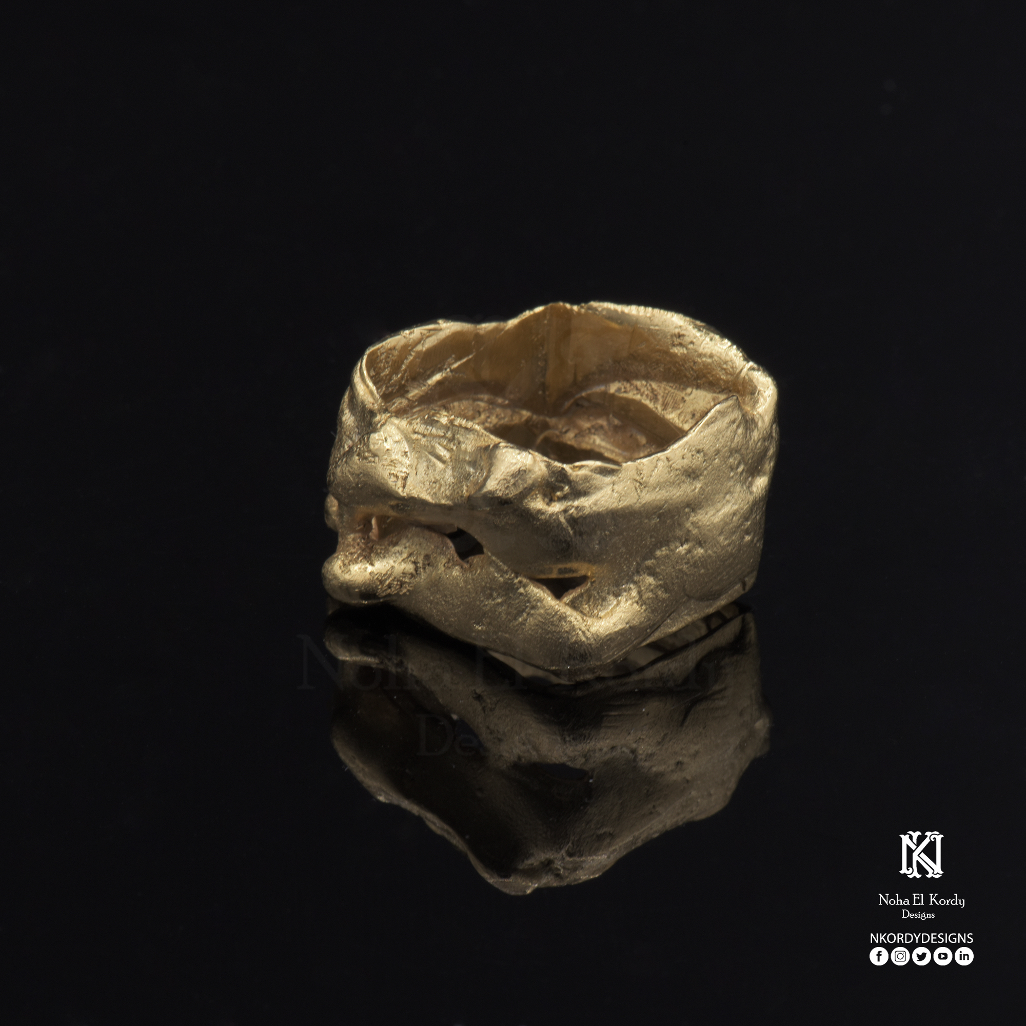 Description: 18k gold plated copper sea waves edition ring. Size 16-18