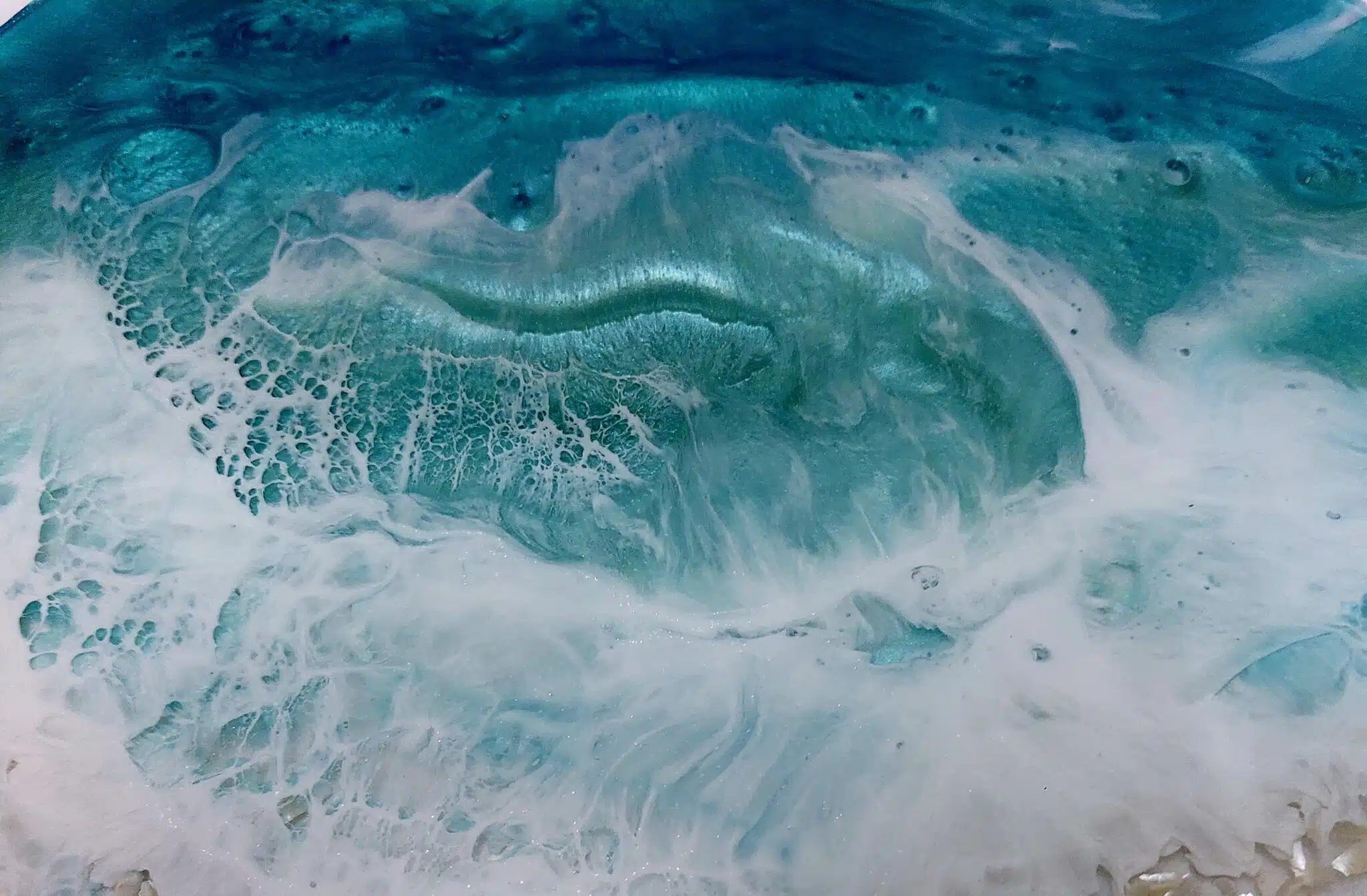 ELEGANT: Resin 100% handmade tray that could be used as a tray or simply a piece of art to decorate your table or wall, round shape, approximately 33 cm, inlaid with natural seashells . Handmade using epoxy resin that is food safe.