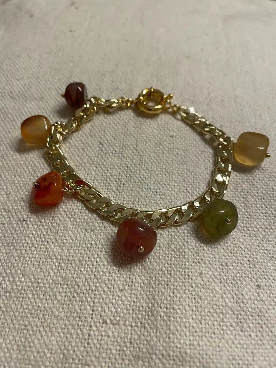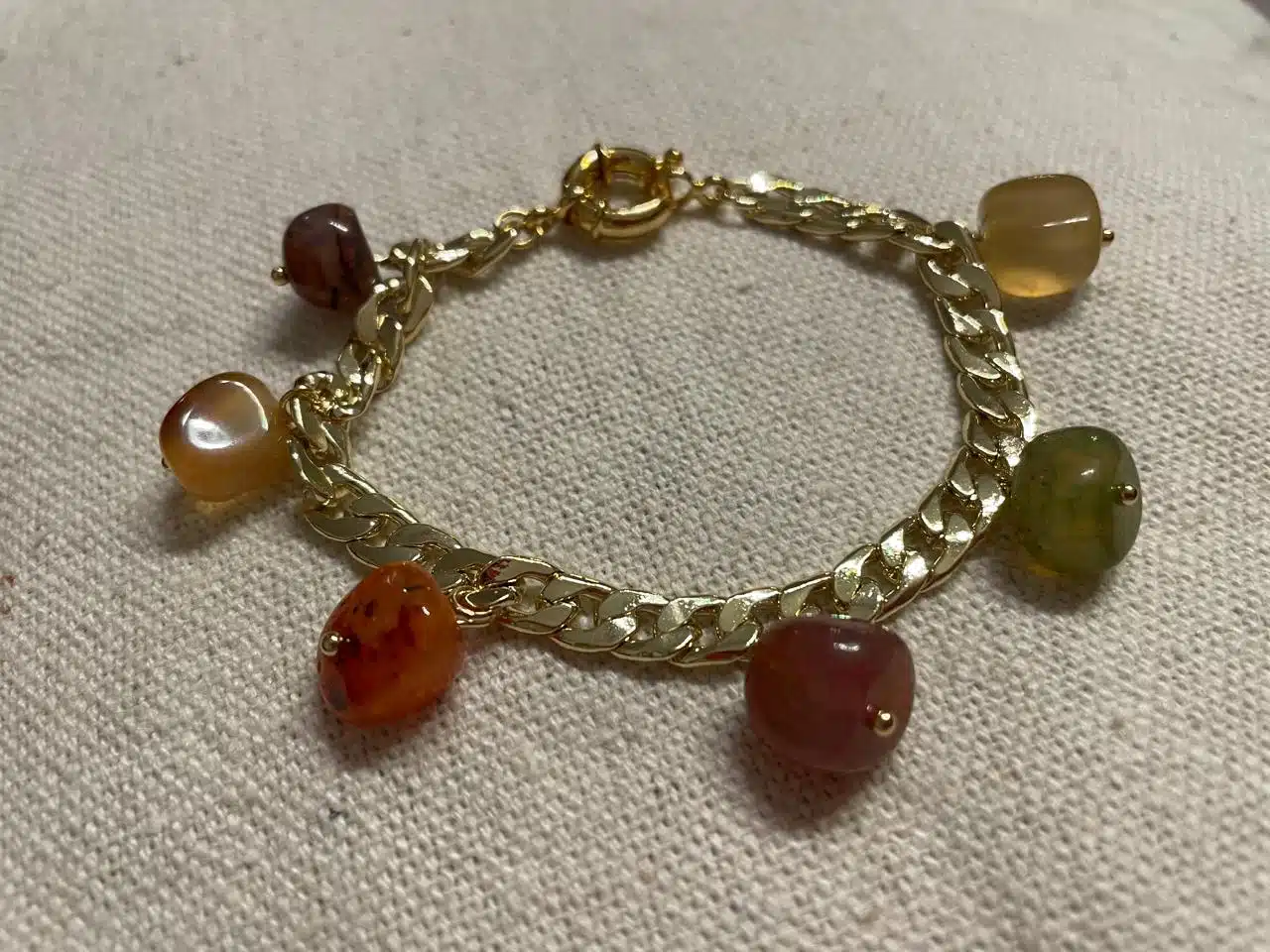 Golden Bracelet with dangling stones in different colors