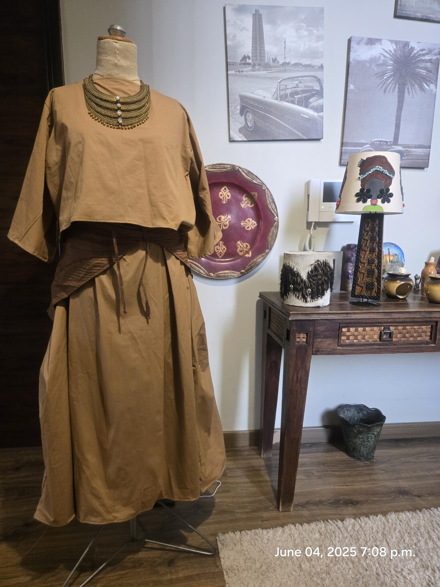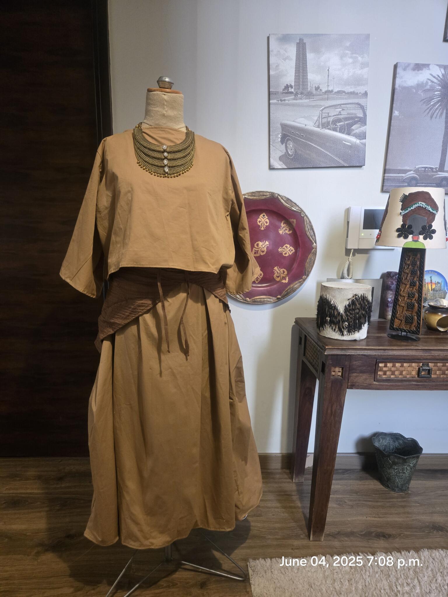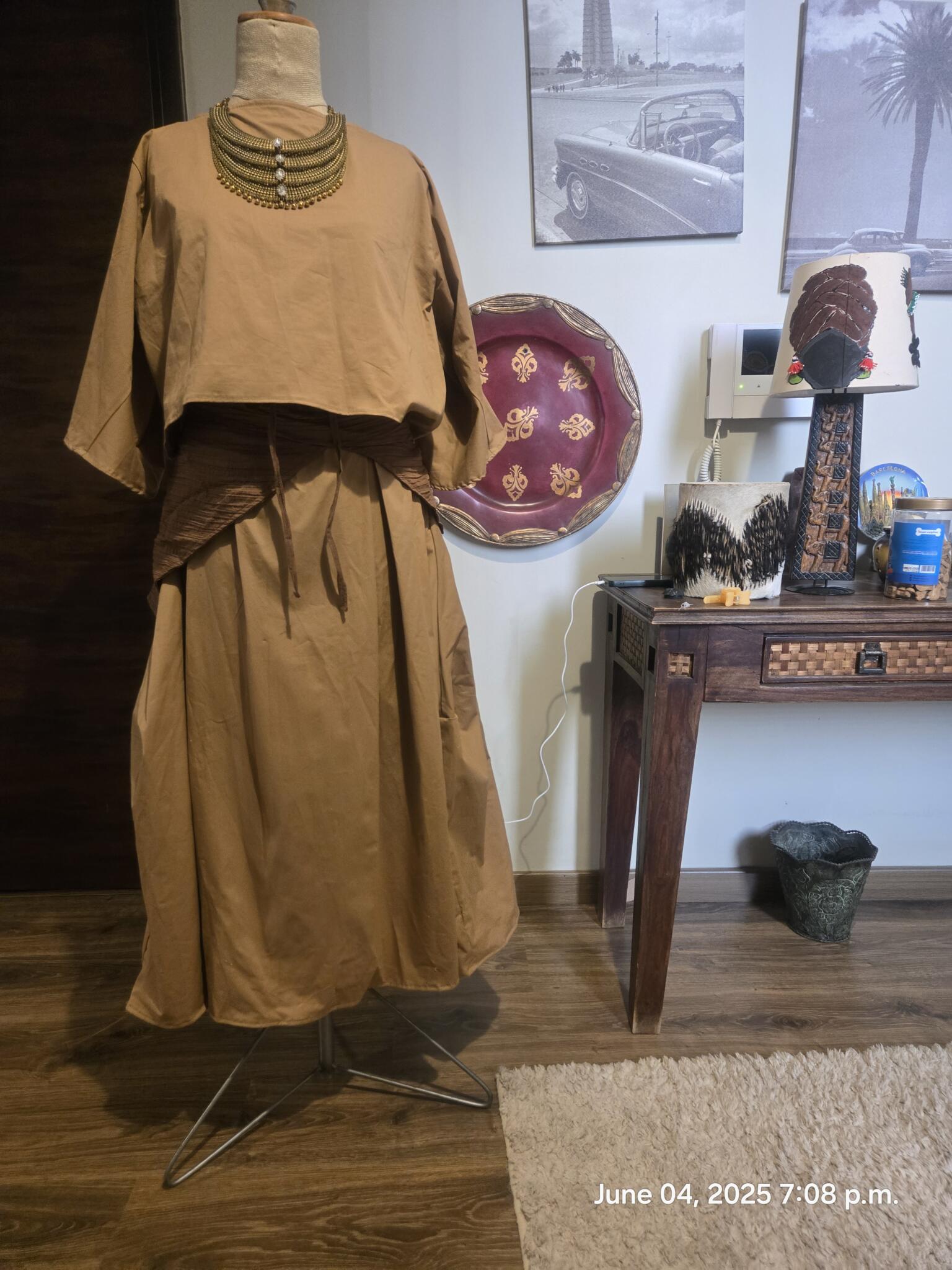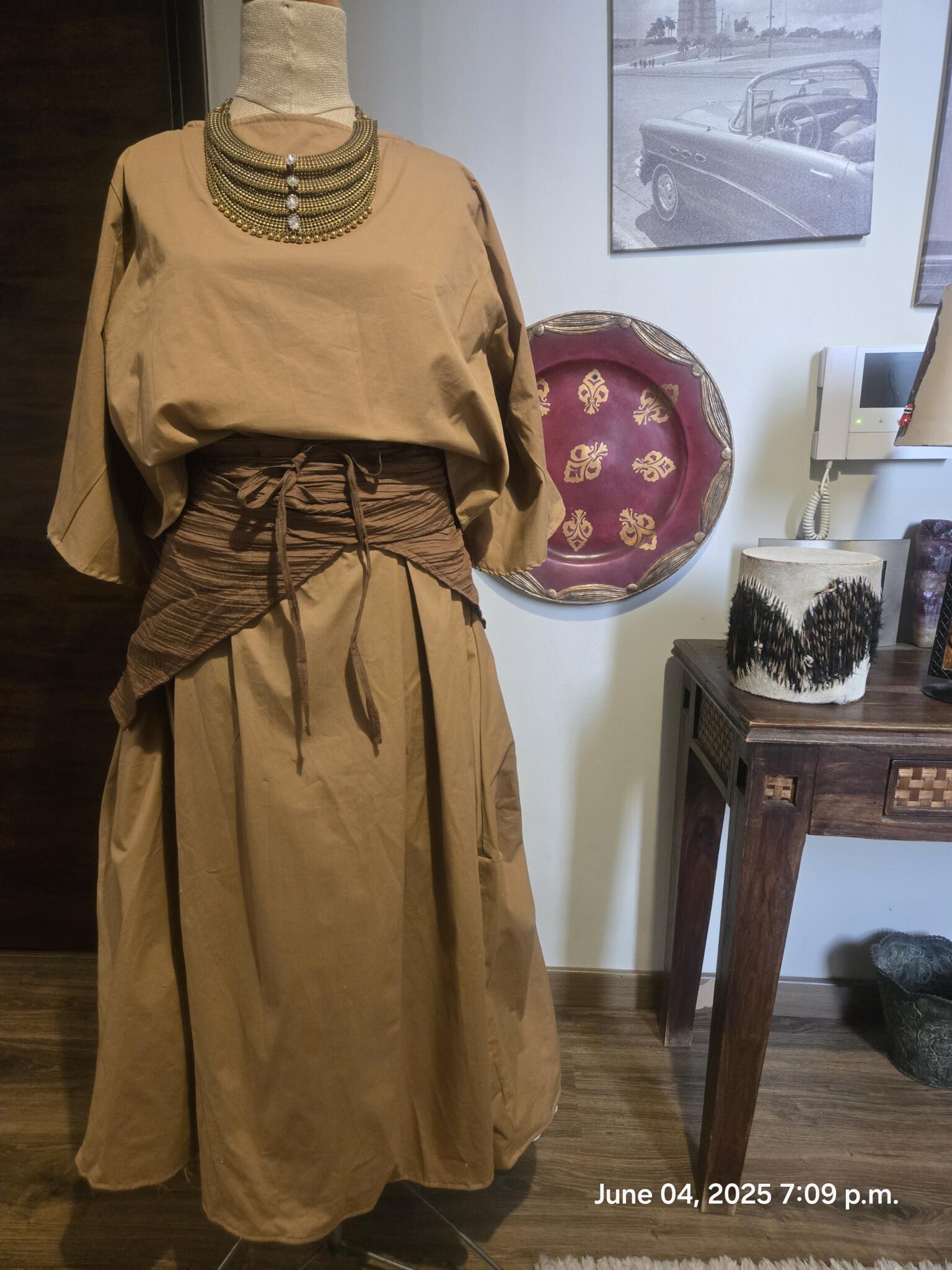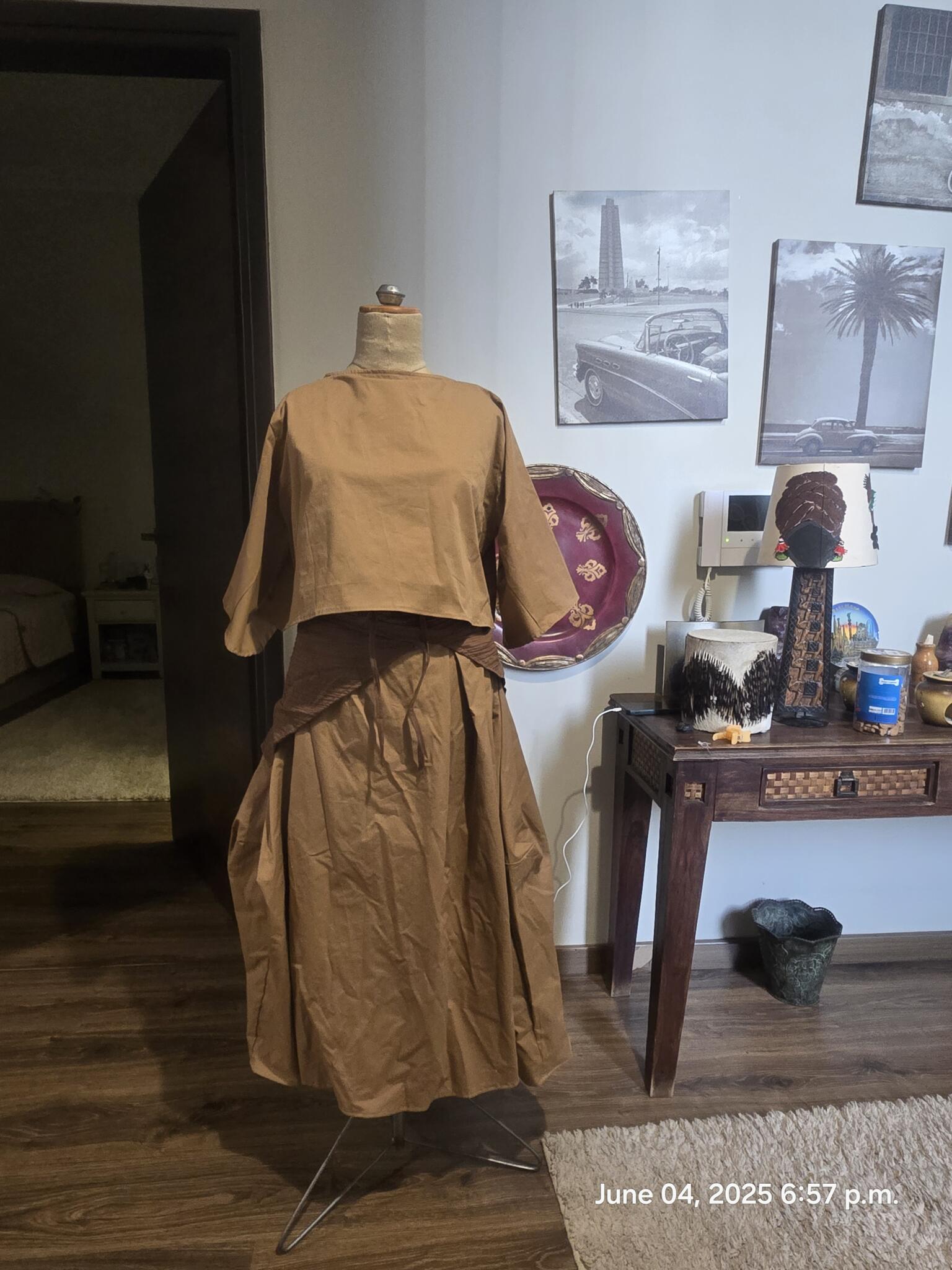 طقم من البوبلين الطبيعي القطني ١٠٠% ، توب و جوب وحزام بلون مختلف
