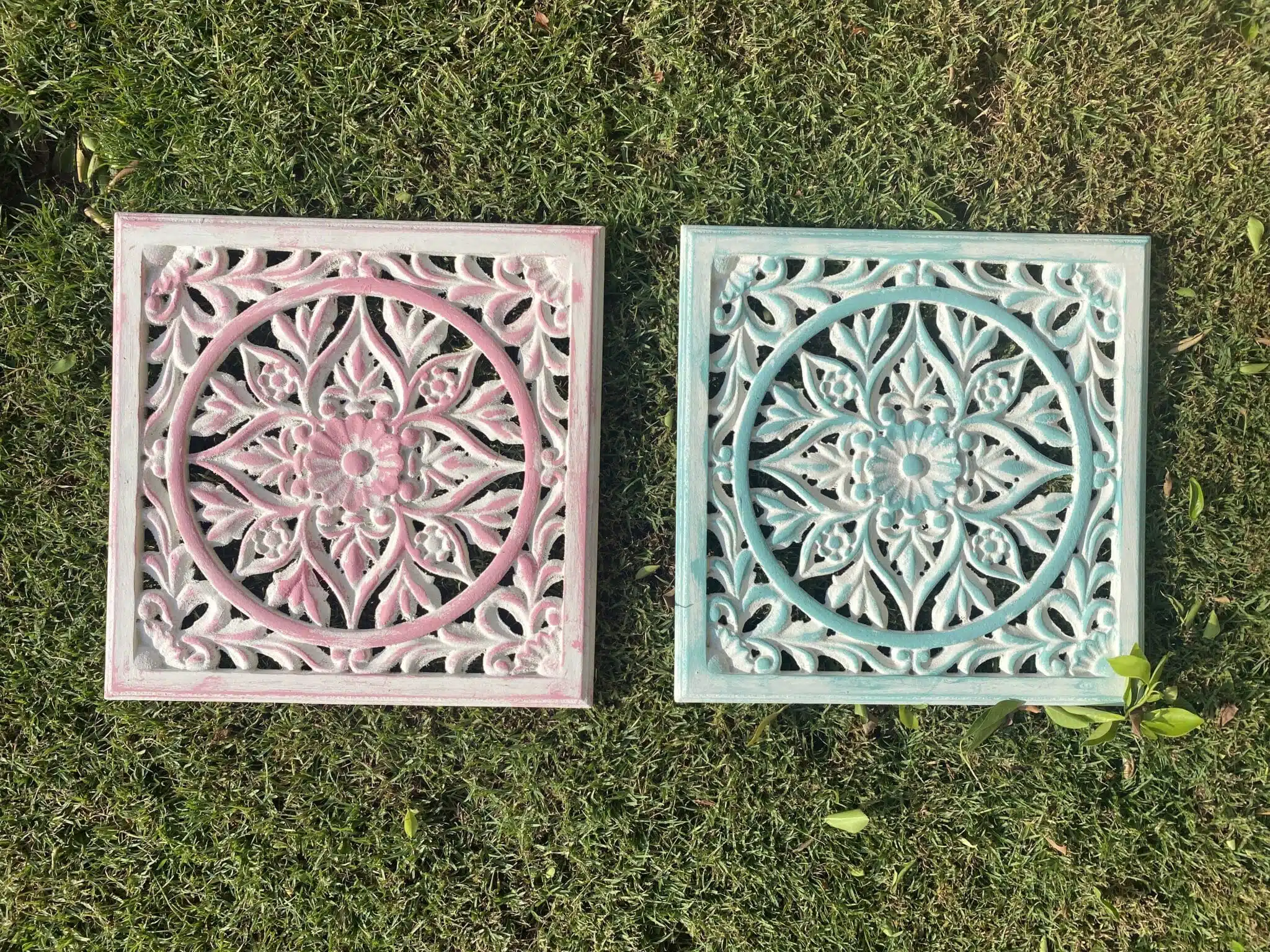 Set of 2 boho style tableaux in dusty rose and mint colors, also can be mixed with matching wall plates