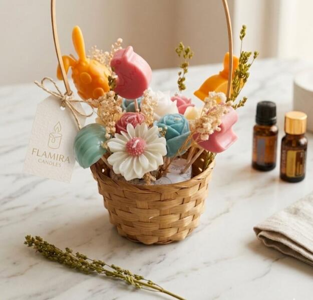 Made from natural wax and carefully designed to feel like a cheerful spring bouquet — perfect as a unique gift or a seasonal home décor piece.