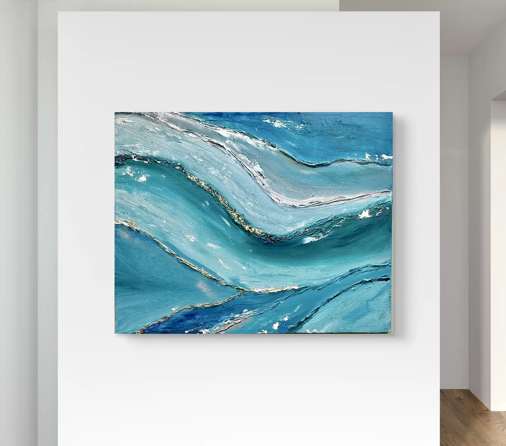 handmade painting consists of texture , sand , gold leafs , acrylic paint.