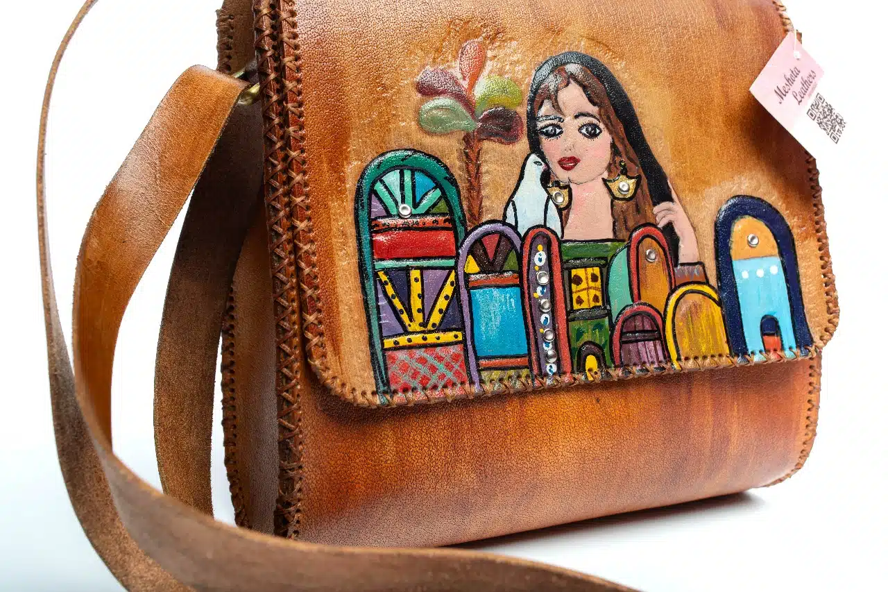 - A distinctive genuine leather bag, entirely handcrafted using the embossing and engraving technique, featuring cheerful designs and colors that will lift your mood. 25*26*9A distinctive genuine leather