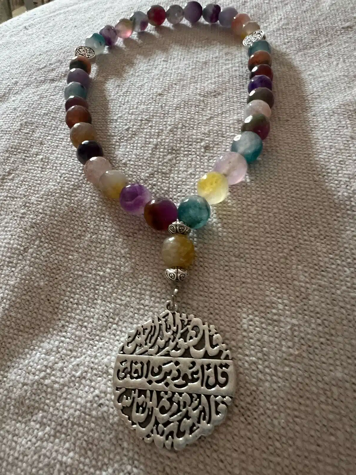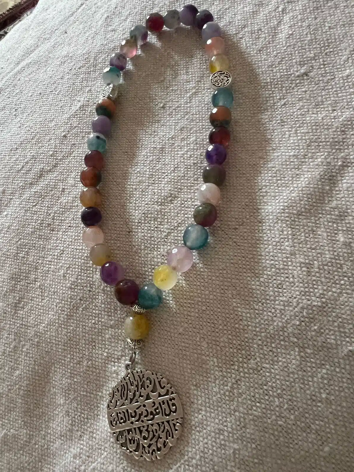 Shifa sebha 33 Large stones 10 mm with elegant silver charm