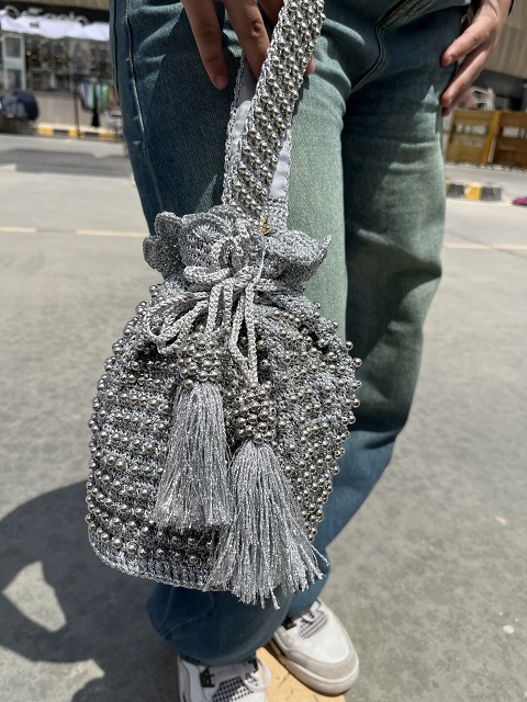 Silver Bag with small beads