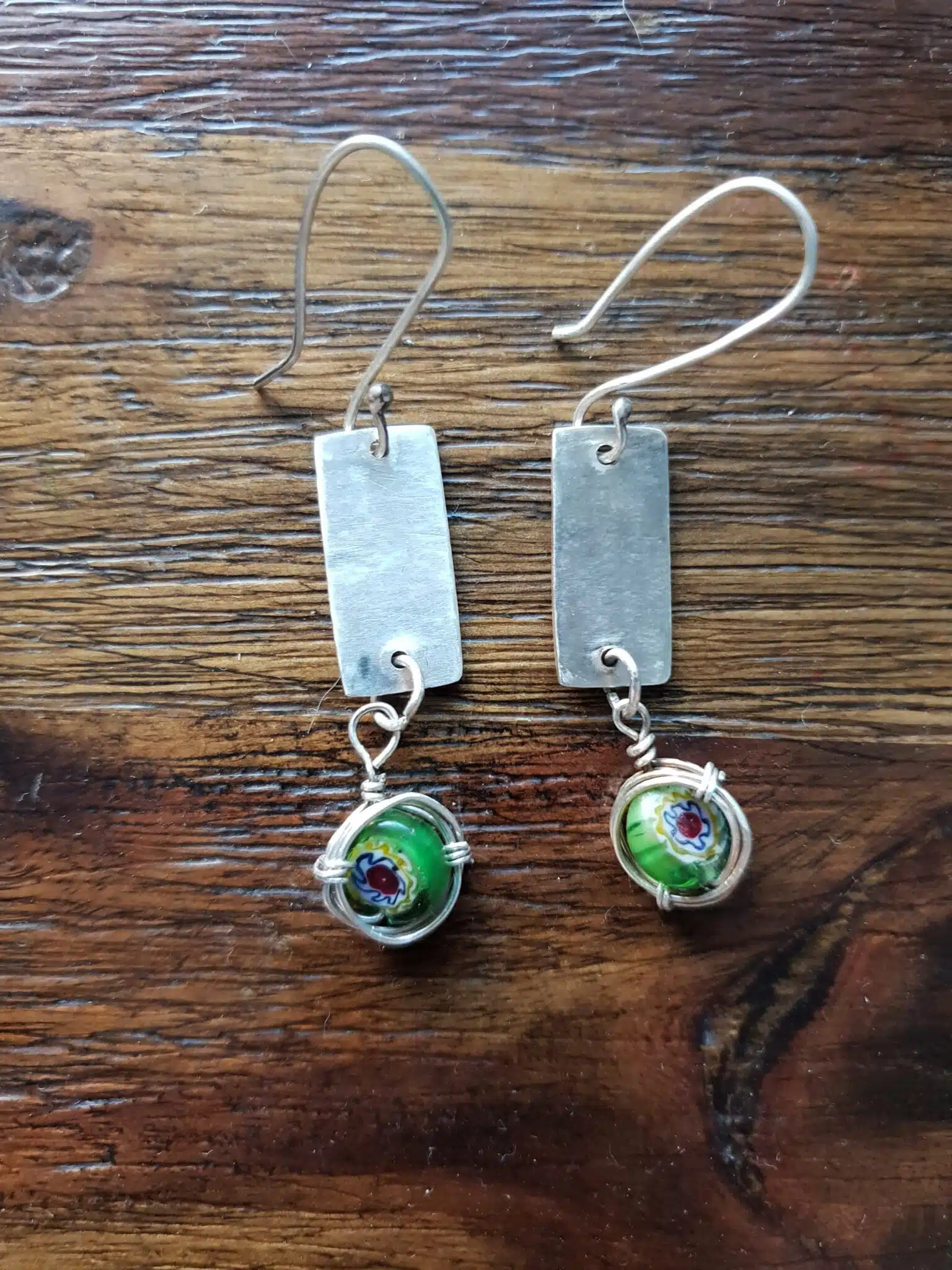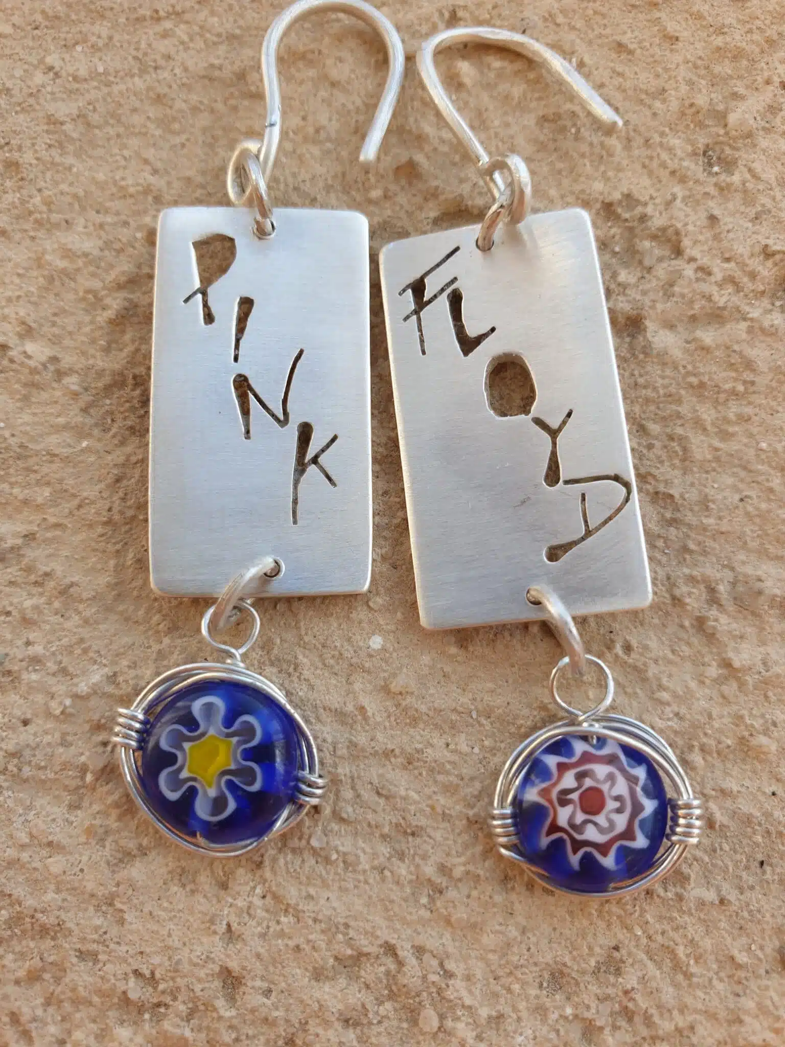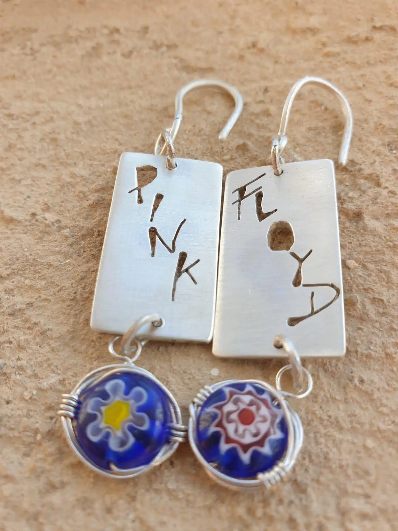 Sterling silver earring with dangling Murano and one customized to include a name.