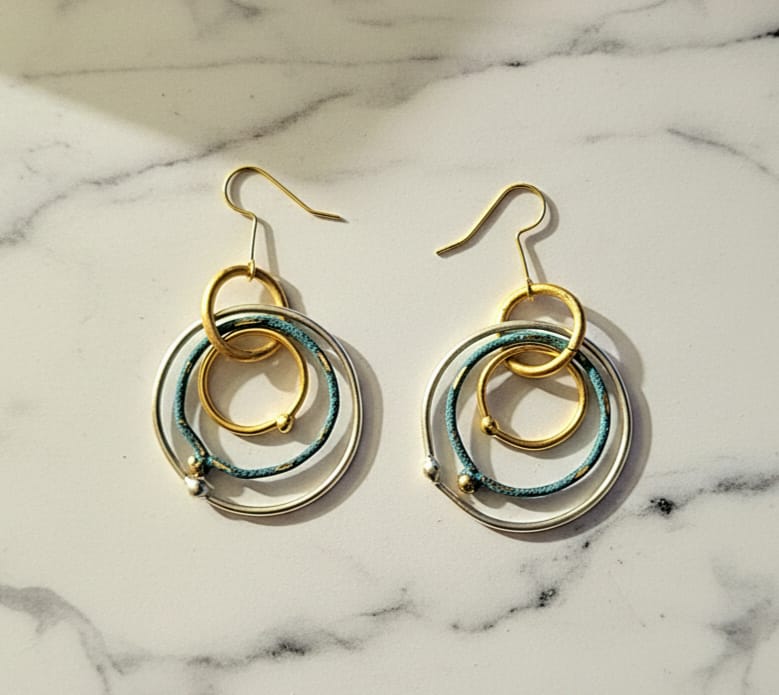 Silver ,Gold plated and vintage Triple layer nested hoop earrings ( 3.5cm diameter )