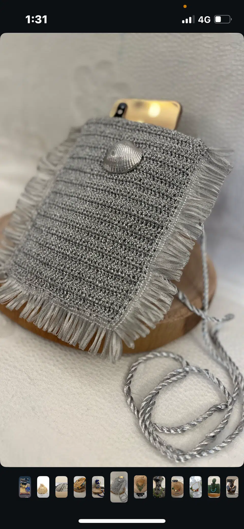 Handmade crochet cross summer bag in color silver with shell detail