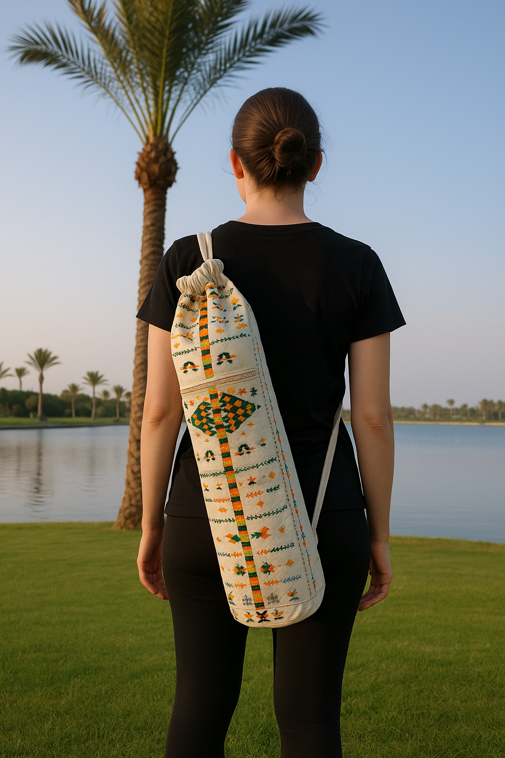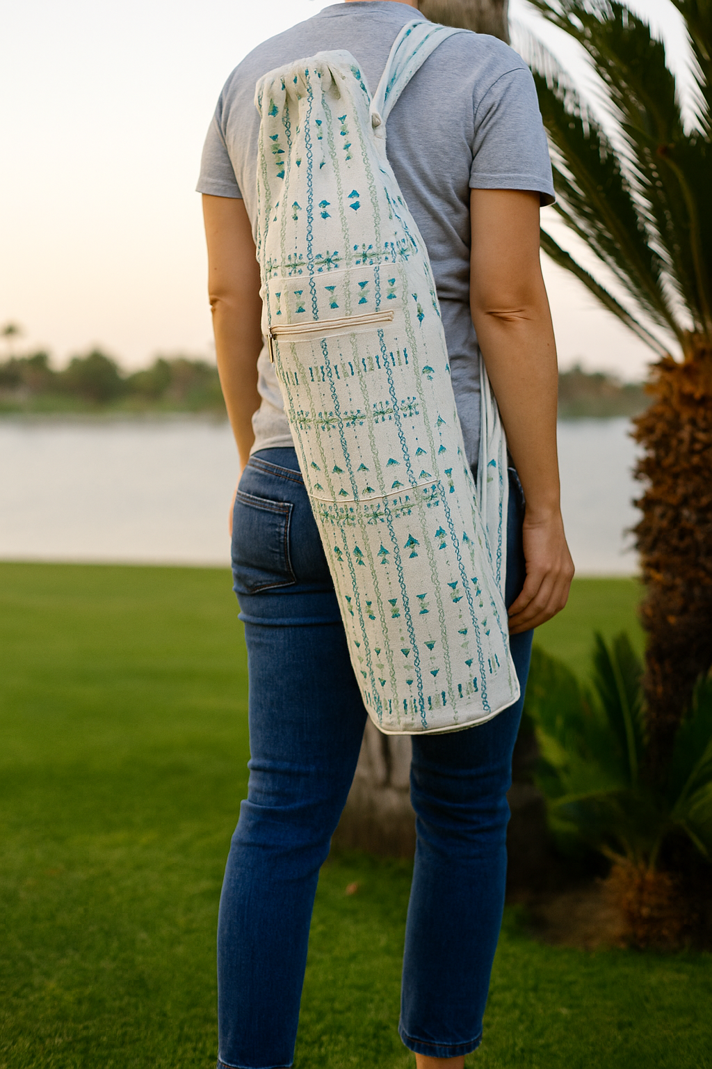 Siwi Embroidery Cotton Beach Yoga Mat Bag 25*70