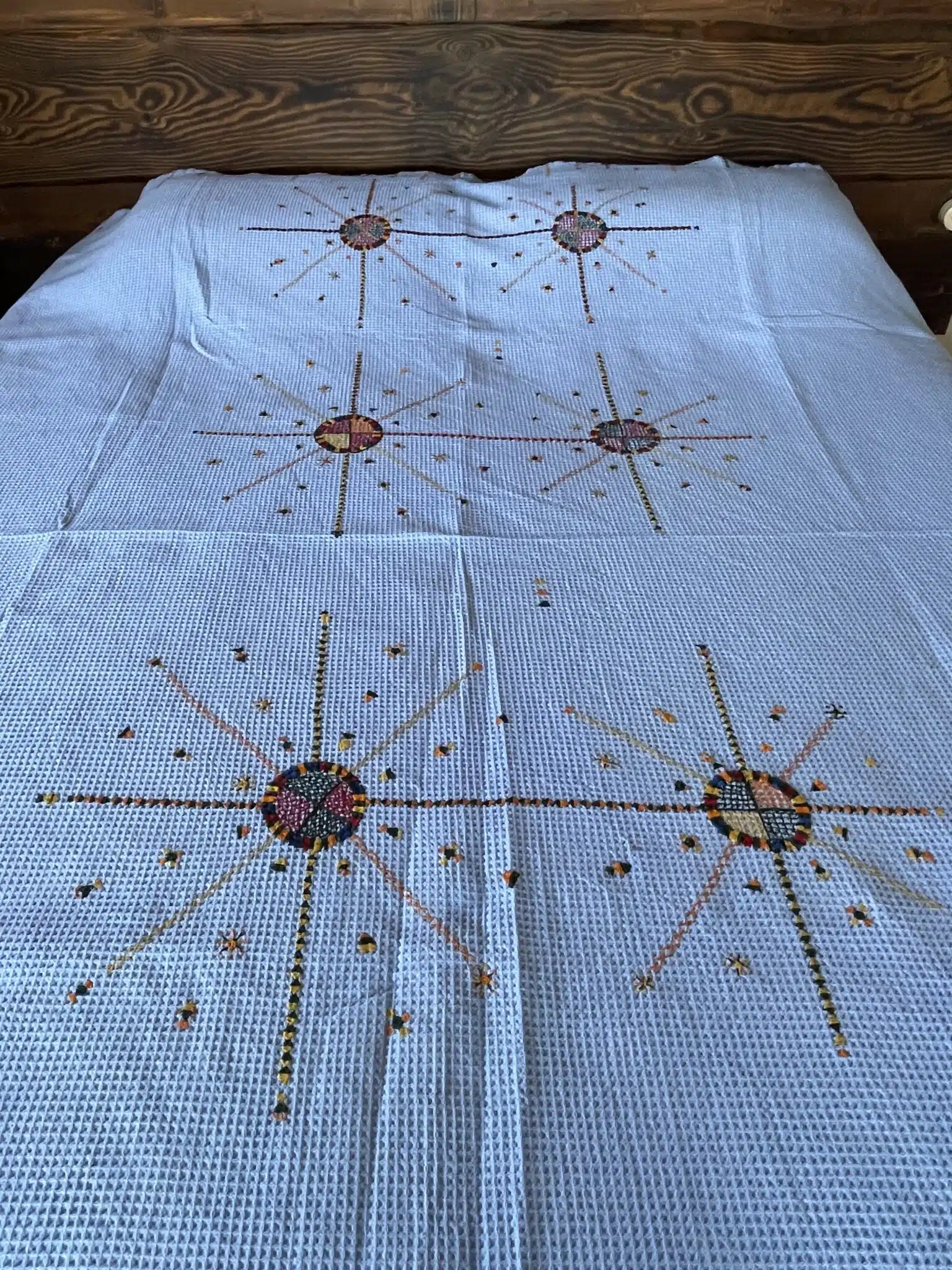 كوفرتة قطن العامرية ٢١٠*٢٣٠ تطريز بأيدي سيدات سيوة