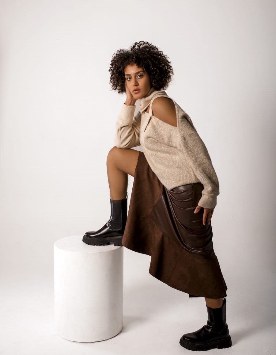 Skirt leather with shamoi only brown