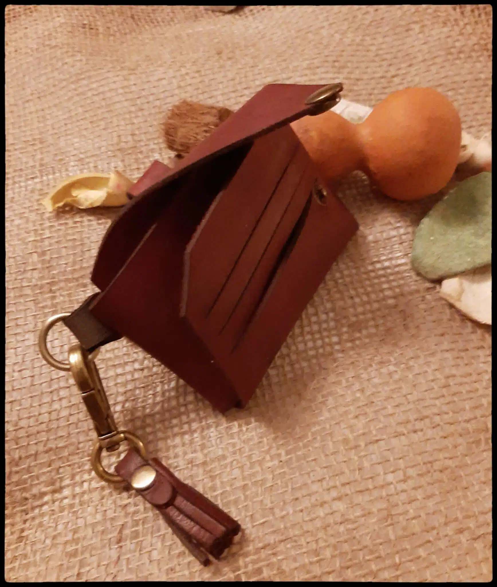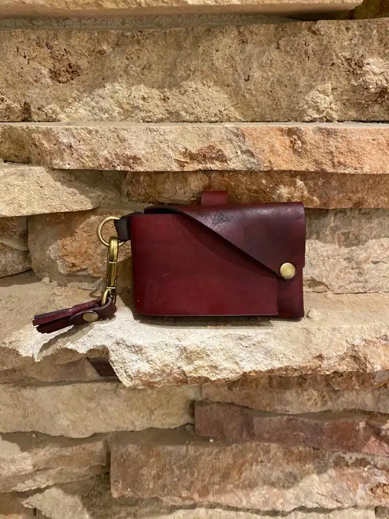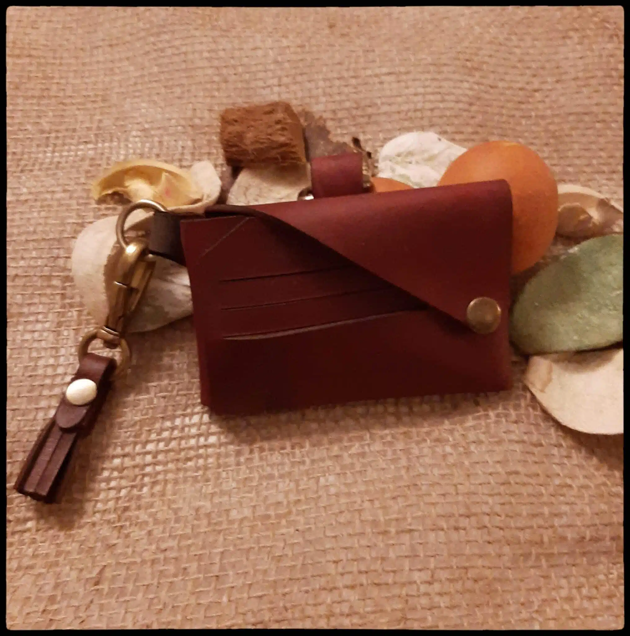 The Leather Business Car Holder is like the card wallet, except with a fold over design and is more commonly used to keep your business cards. There are three internal card pockets that hold up to 6- 9 credit cards, ID cards or cash. With a stylish minimalist design, its perfect for clipping into your pocket or bag with the keychain hook attached. You also have the option of personalizing with initials.