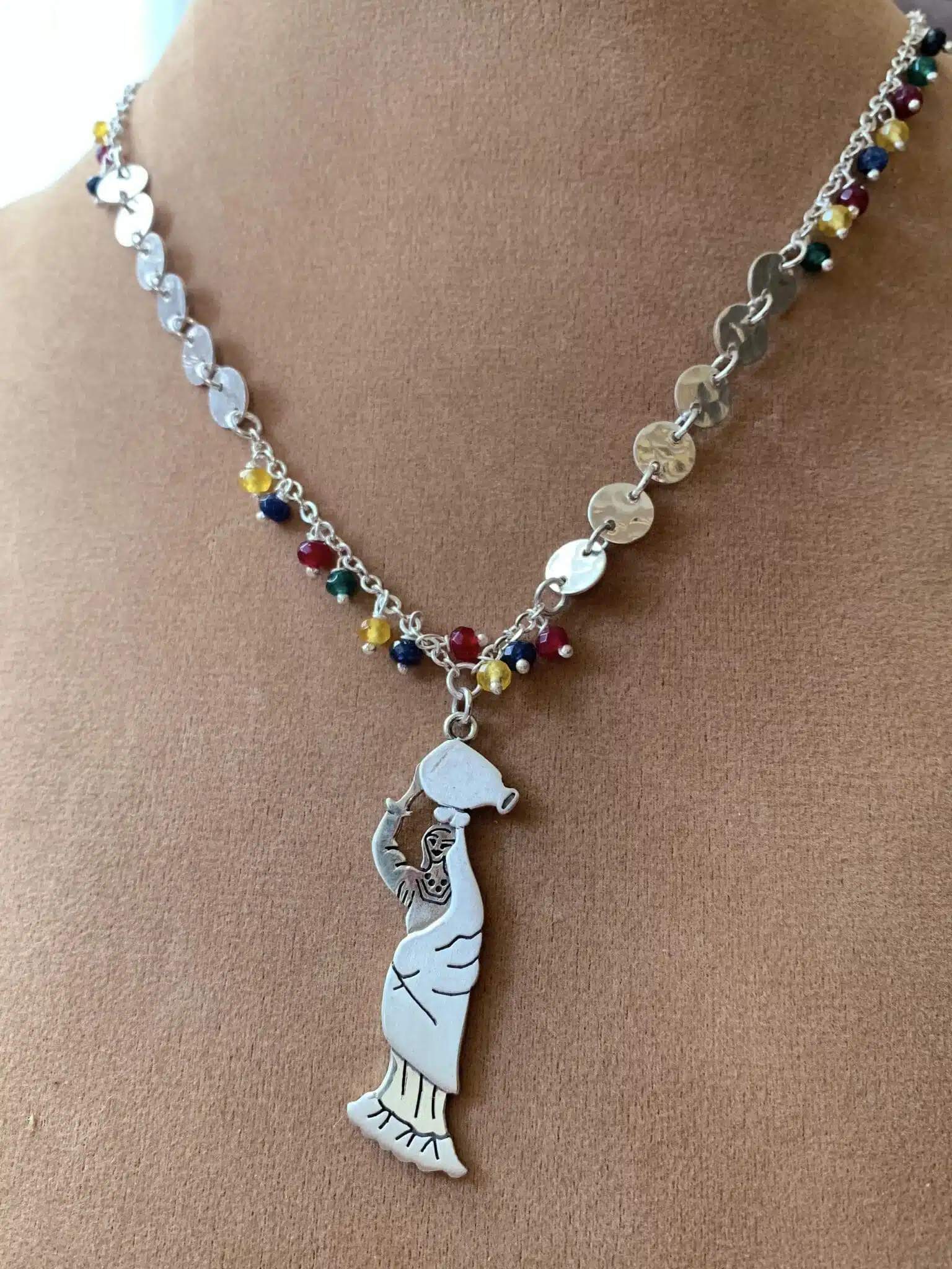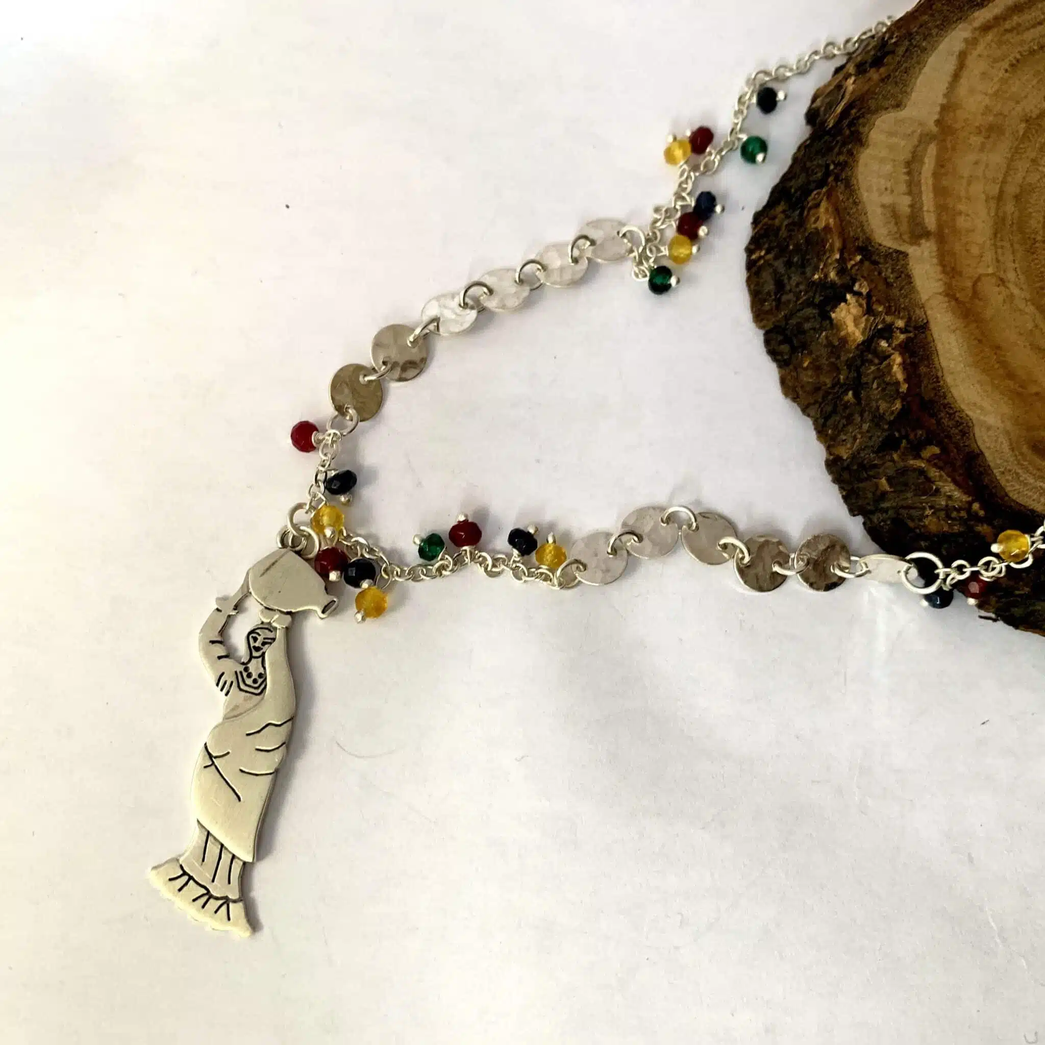Small Falaha sterling silver 925 hand made pendant in a beautiful chain assembled with tiny stones