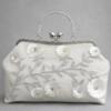 An off-white velvet bag embroidered with silver and off-white stitches and sequins.