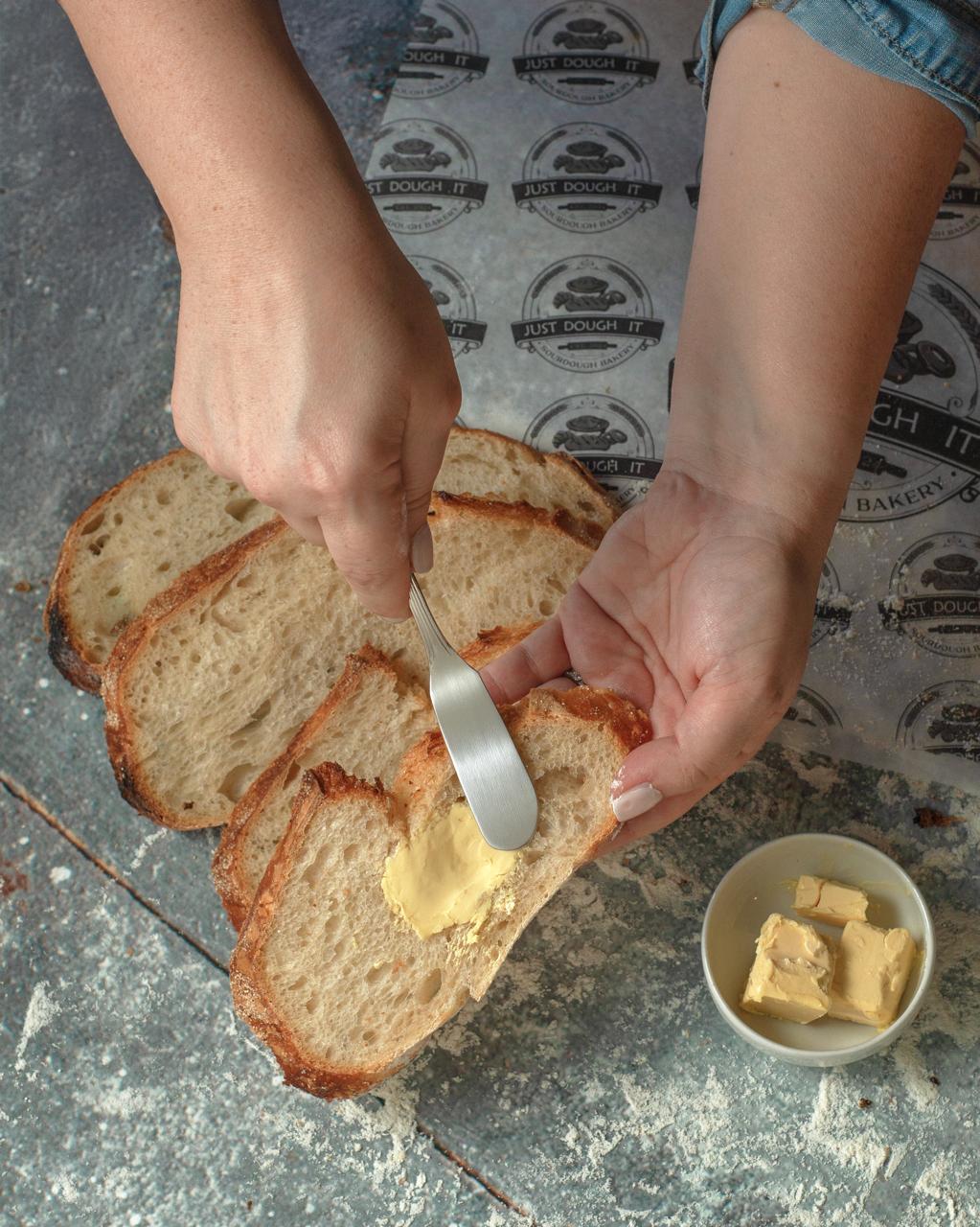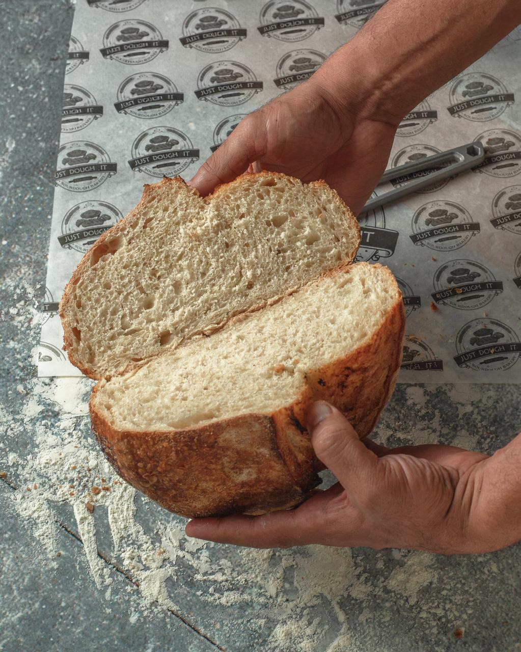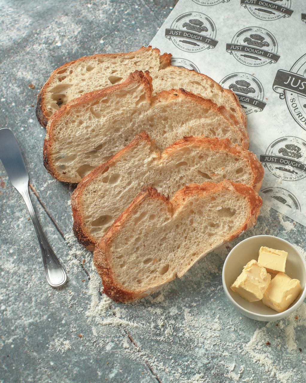 Authentic Sourdough bread with a crispy crust and chewy center. Enjoy the distinct flavor and excellent digestive benefits. Order your healthy sliced loaf today!