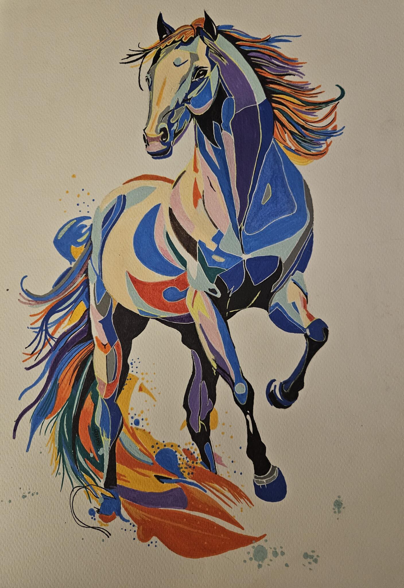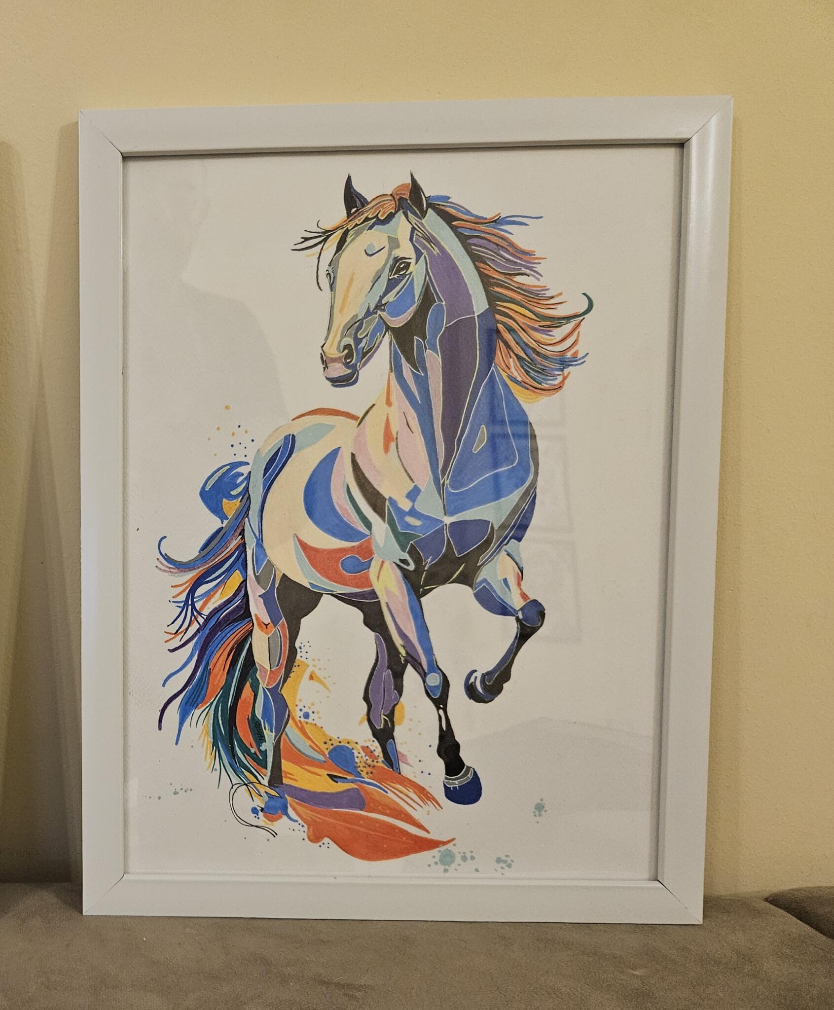 “Spectrum Stallion” acrylic painting in a white wooden and glass frame 30*40cm A3 size