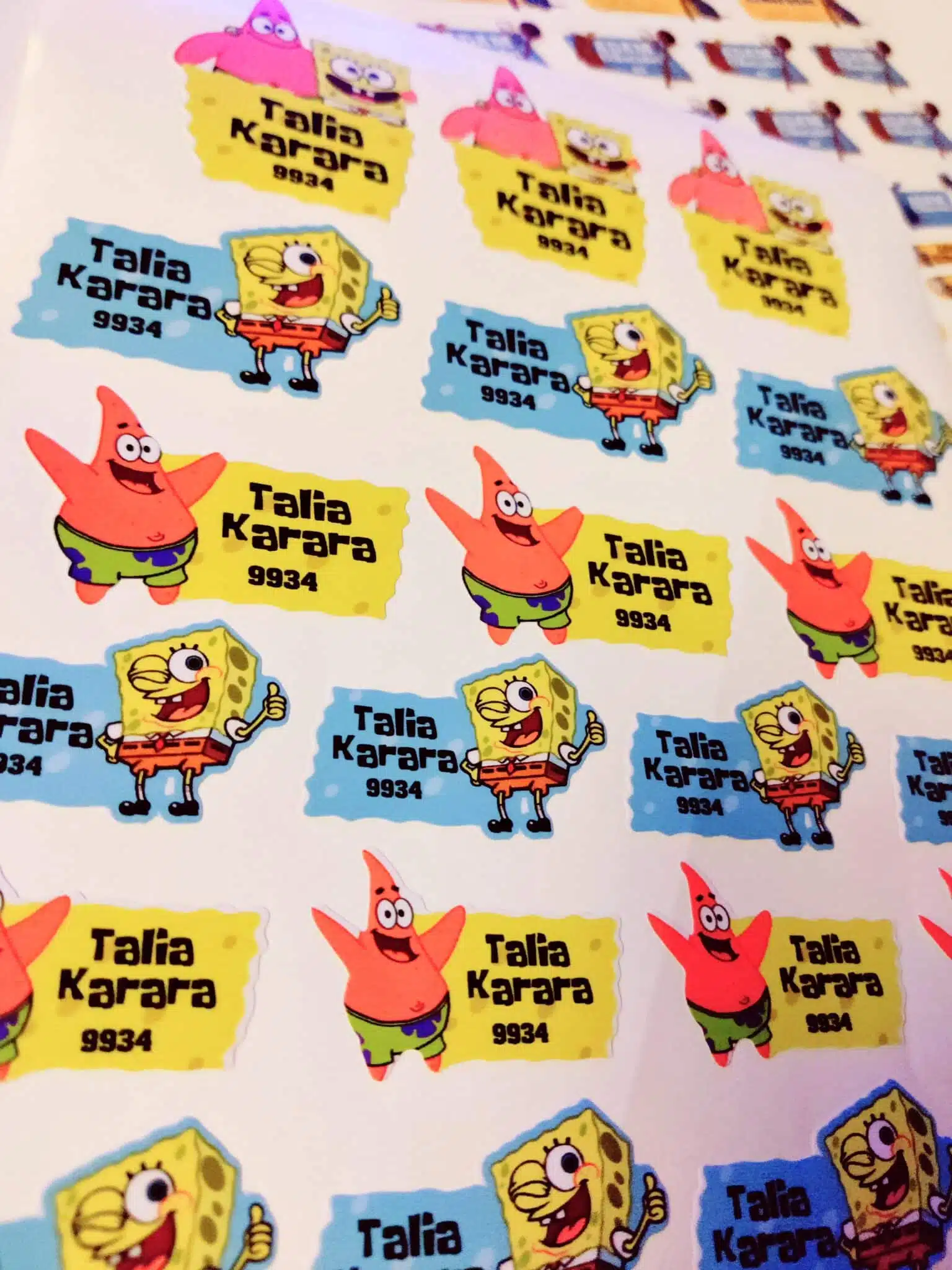4 labels for bottle and lunchbox