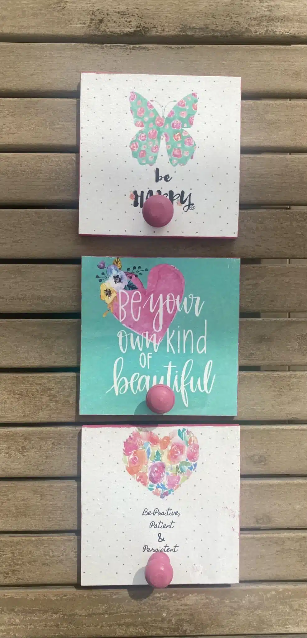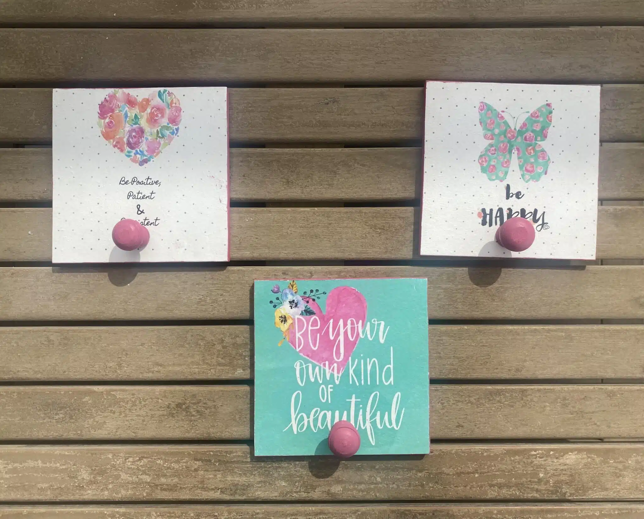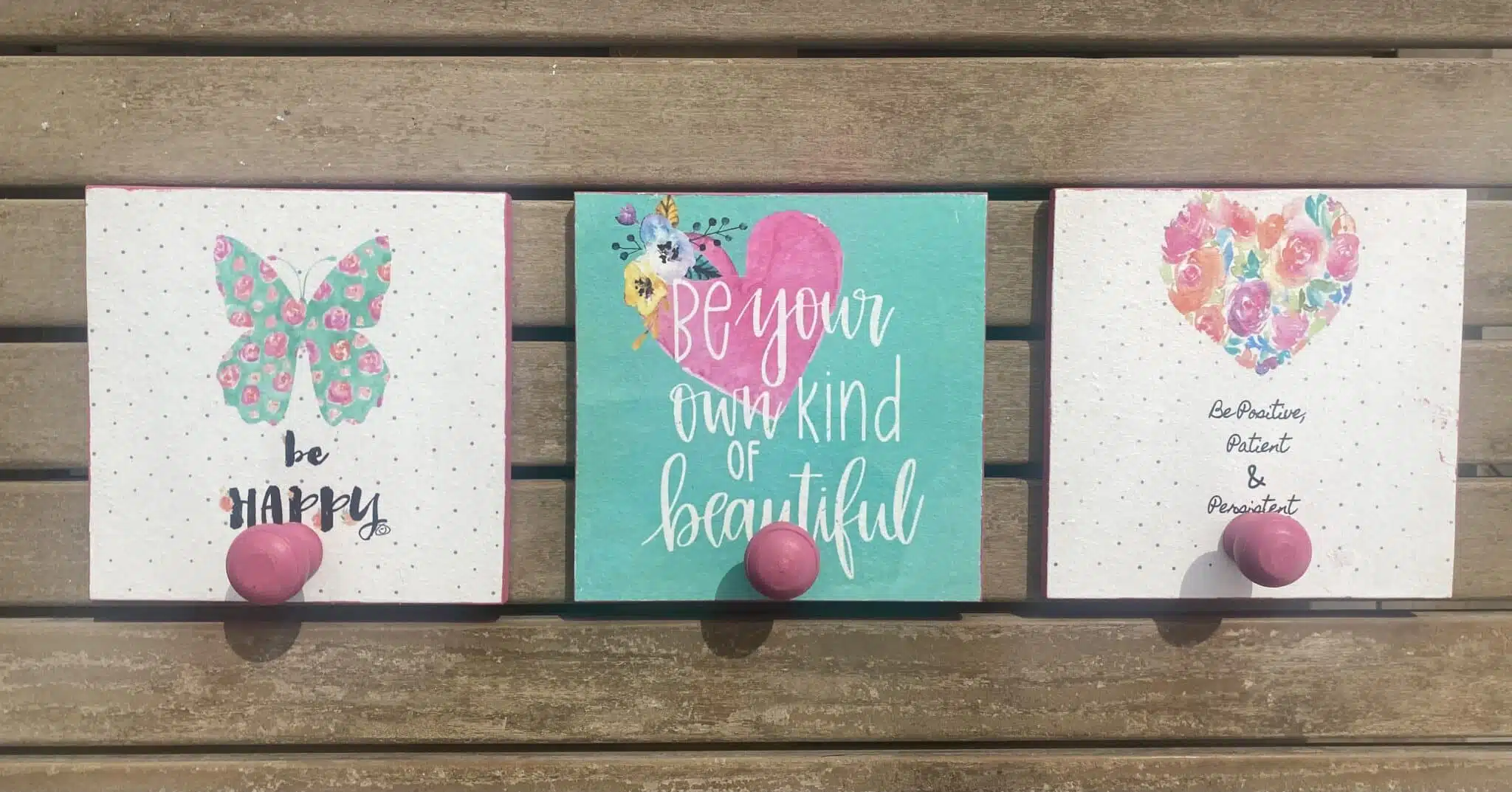 Wooden set of square hangers colorful with positive quotes