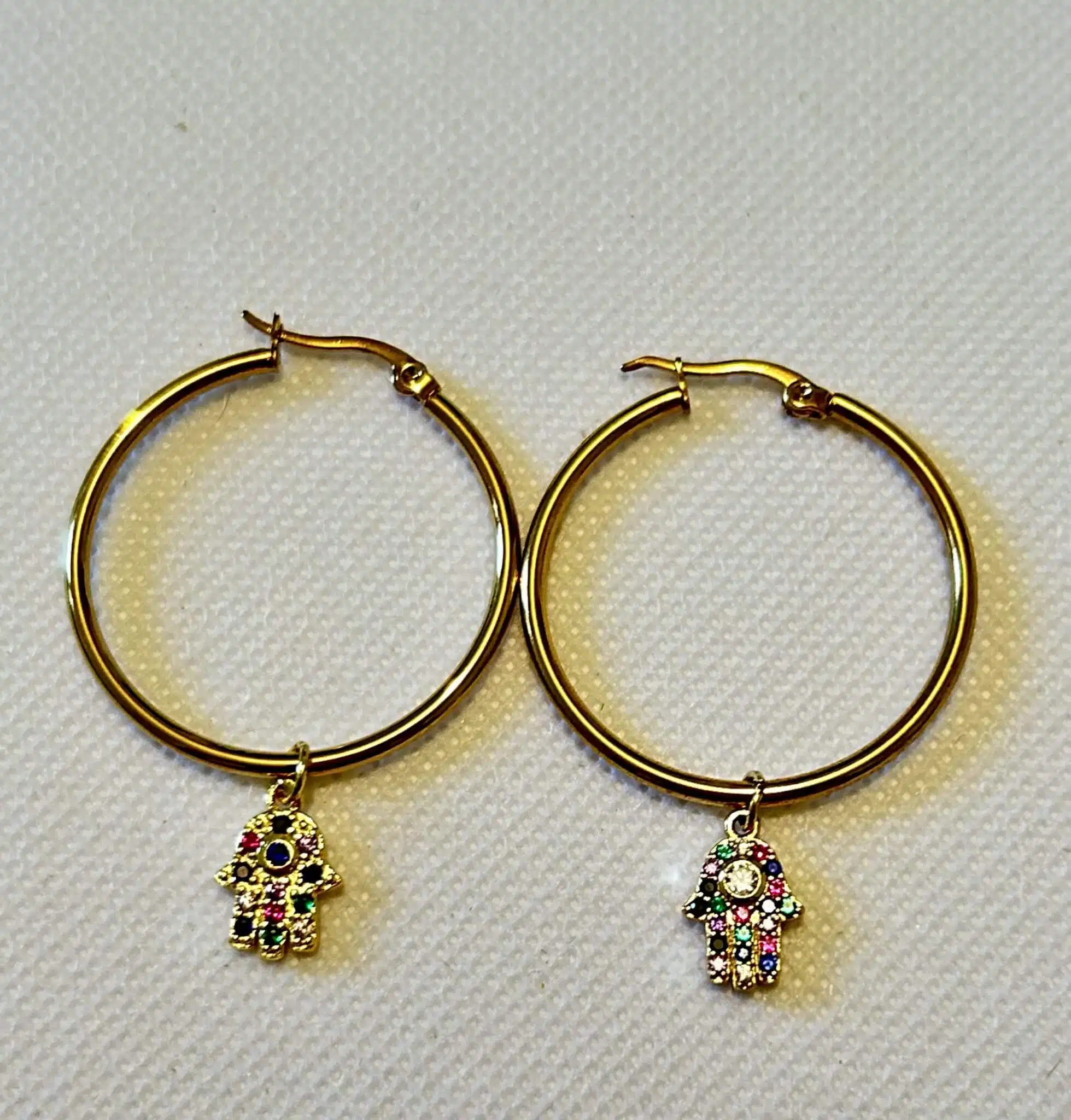 Stainless steel earrings with colored zircon strass Fatima hands