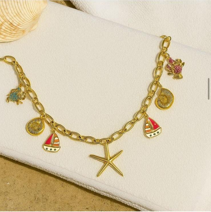 OUR BEST SELLINGĀ STARFISH NECKLESS CRAFTED WITH CHINESE GOLD CHAIN AND CHARMS.
