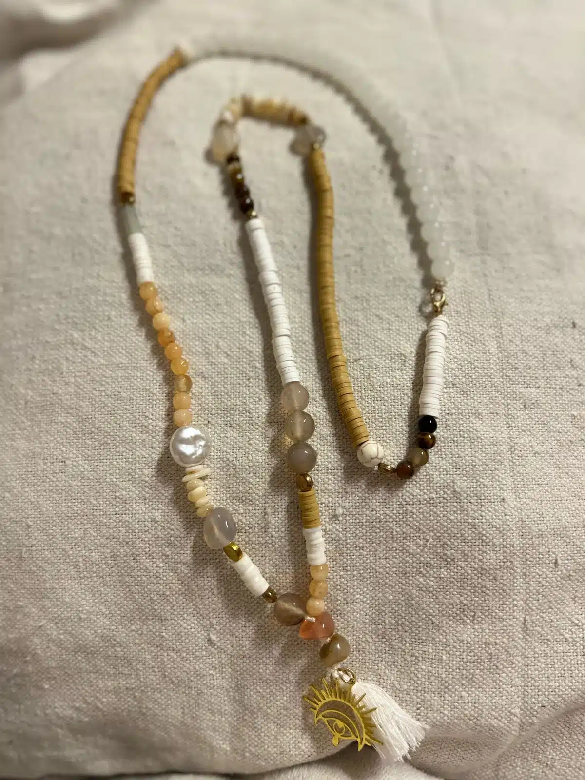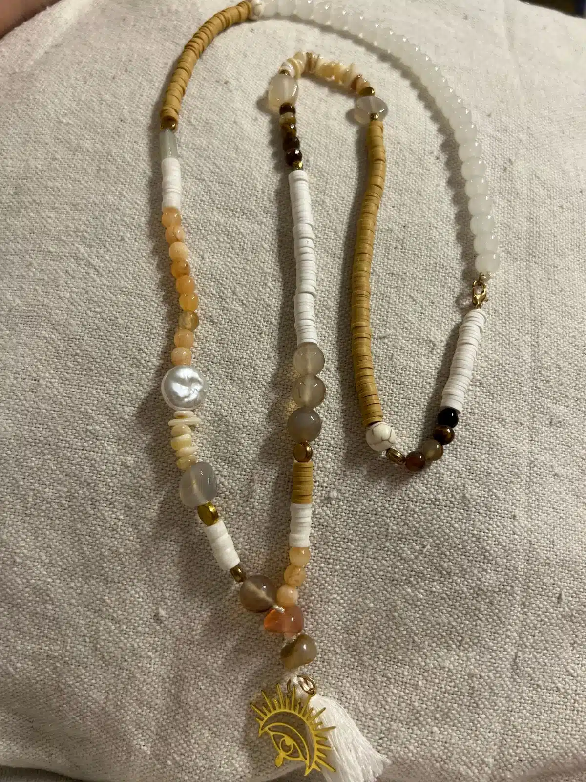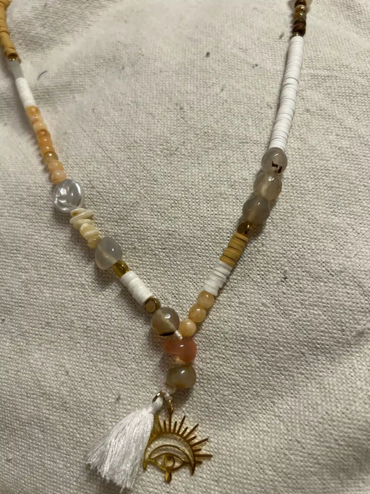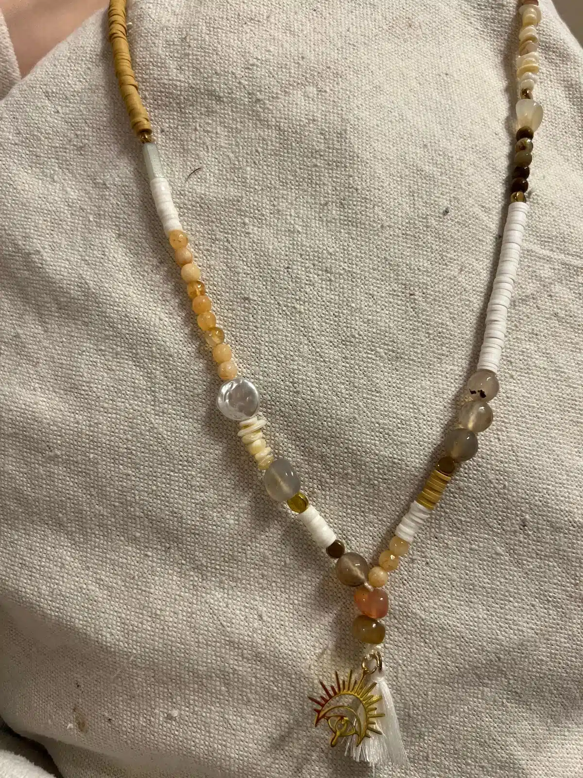 Handmade Necklace with a touch of dangling golden charm with elegant stones