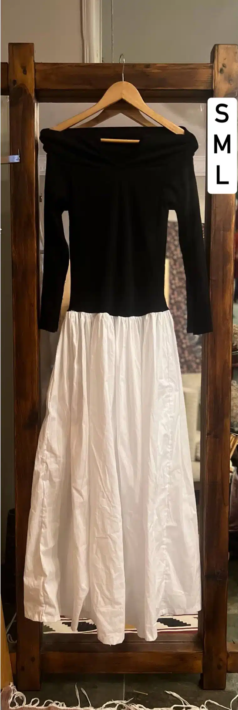 material: Ribbed black cotton upper top with a poplin Skirt that completes the elegant look of your statement dress.