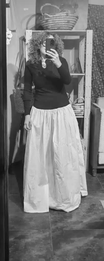 Very soft cotton for the upper part and elegant poplin for the lower skirt part.