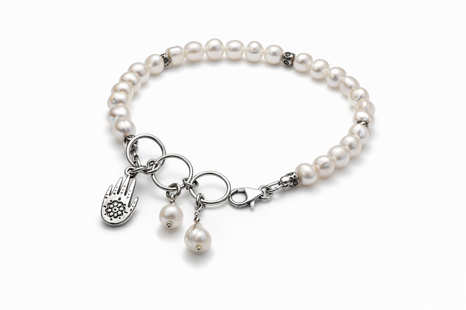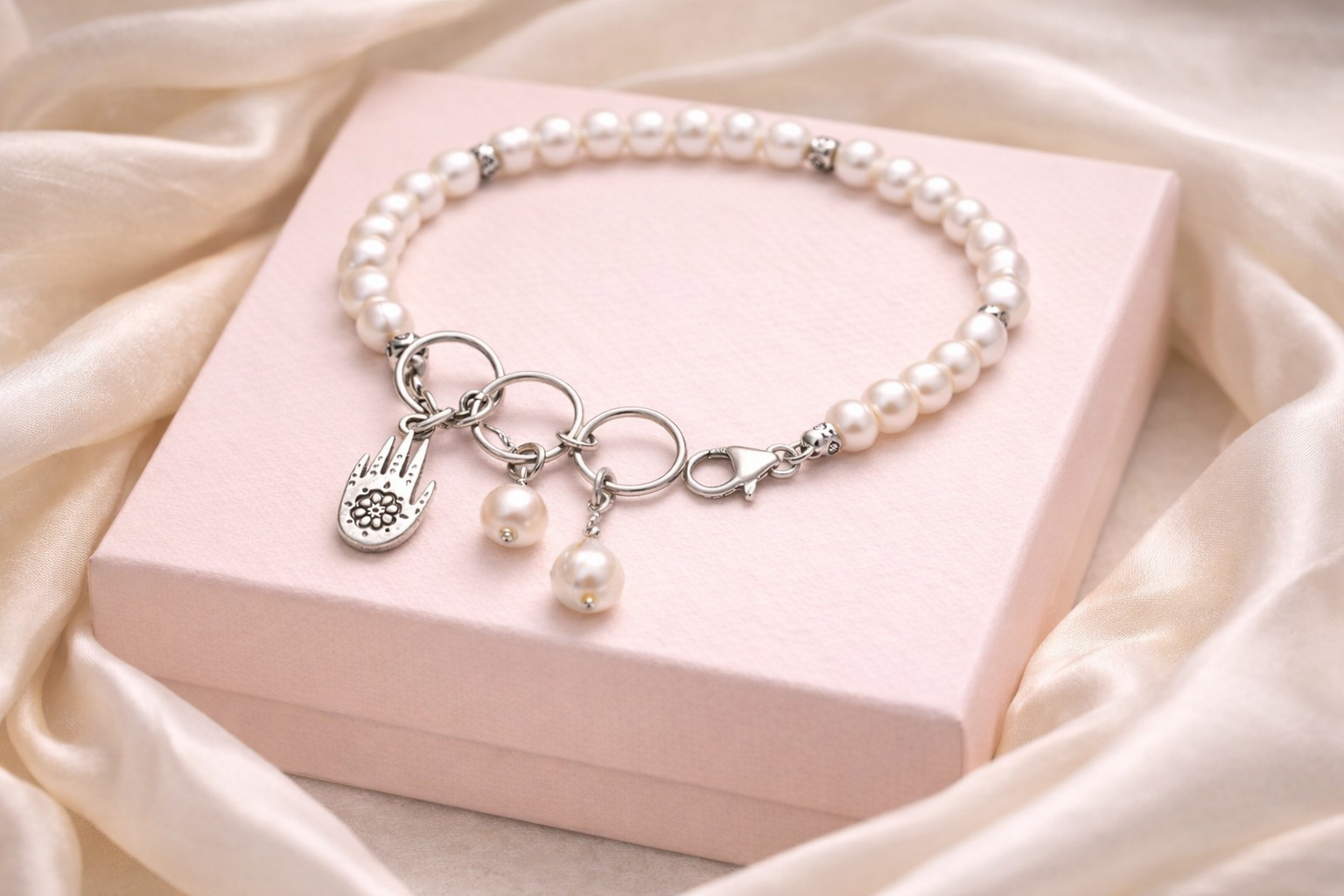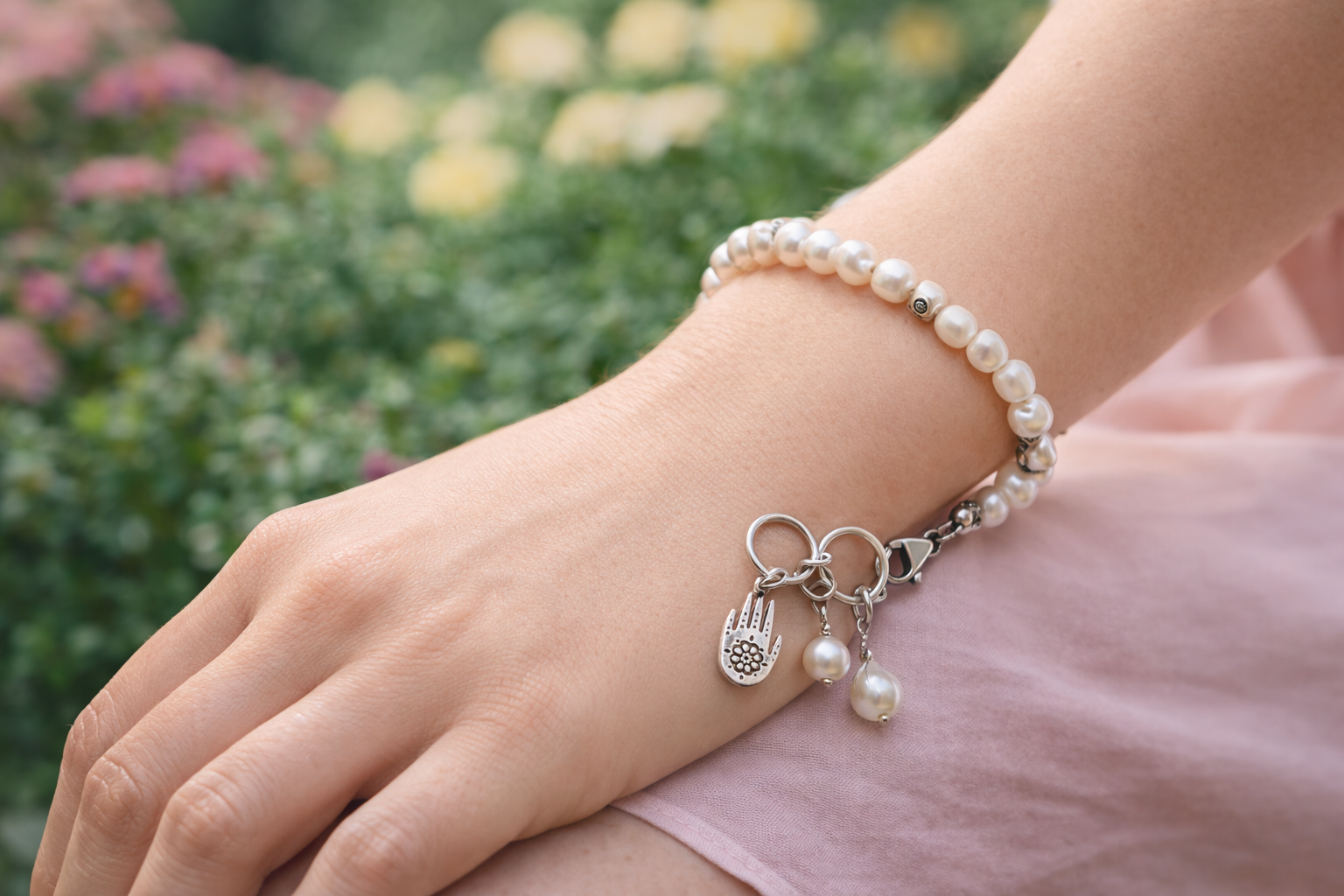 Classy girl wear pearl, pearl coral bracelet, sterling silver clasp & spacers