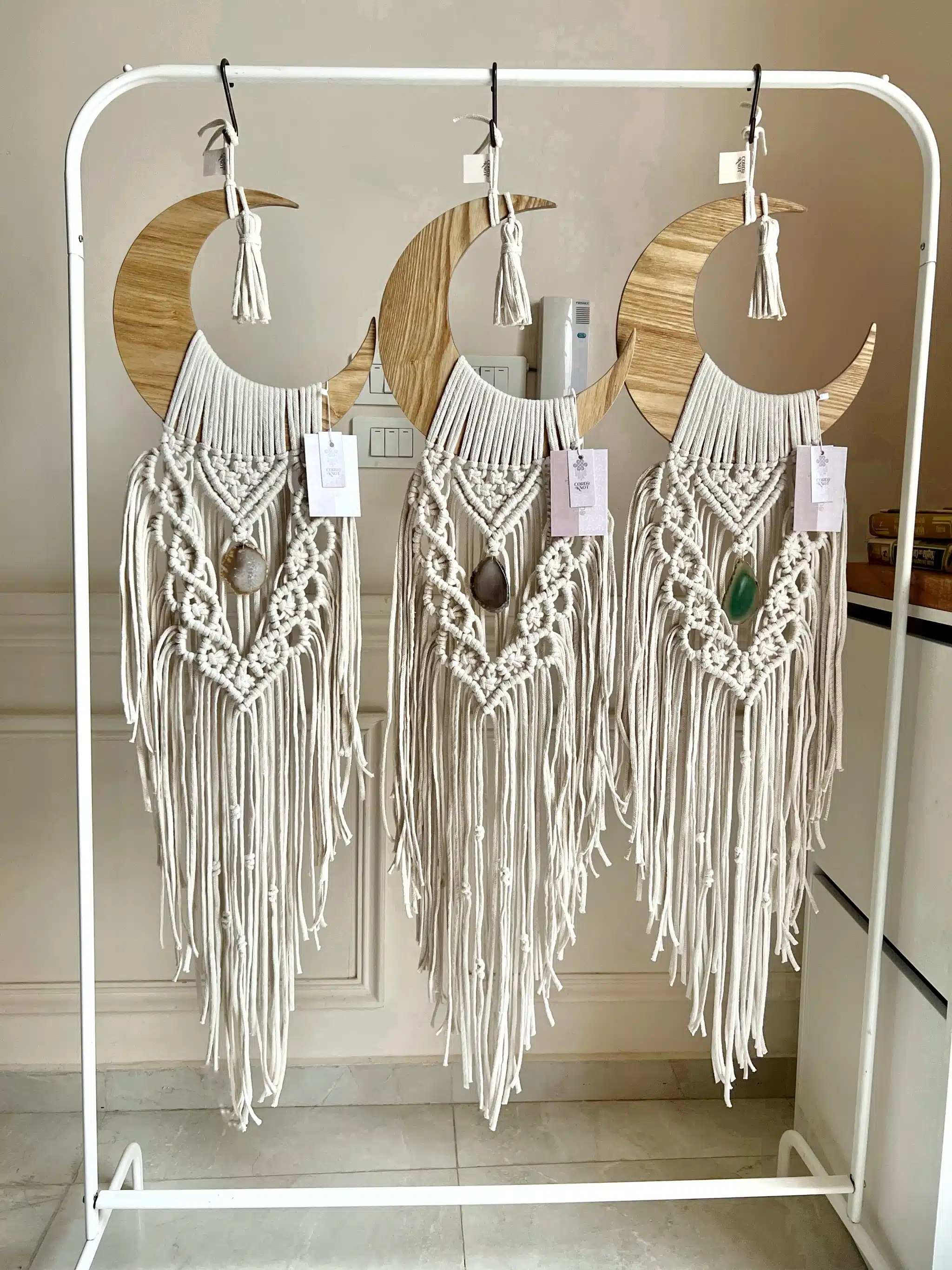 Handmade wooden moon that decorated with beautiful stones to add an elegant touch to your home.