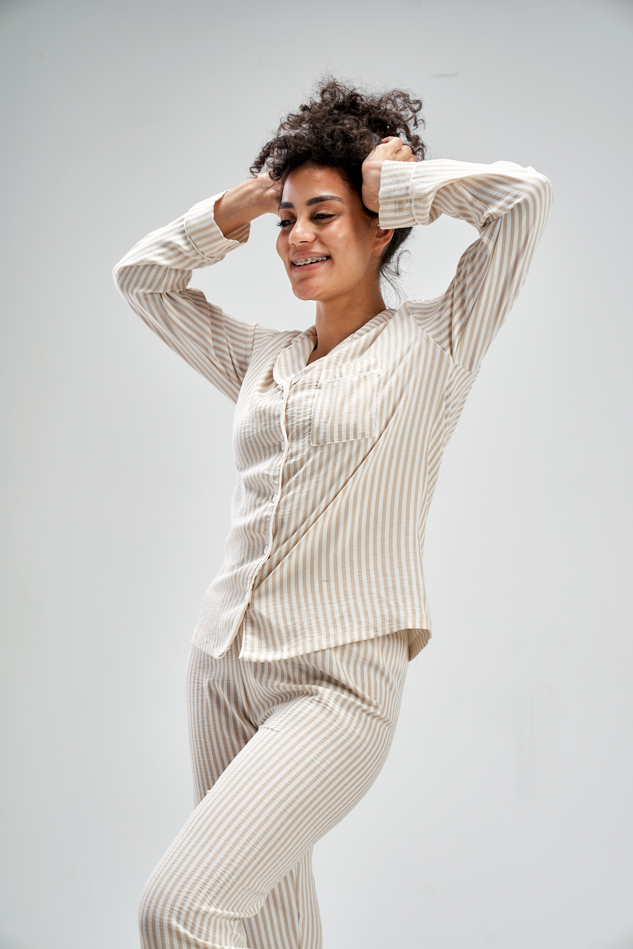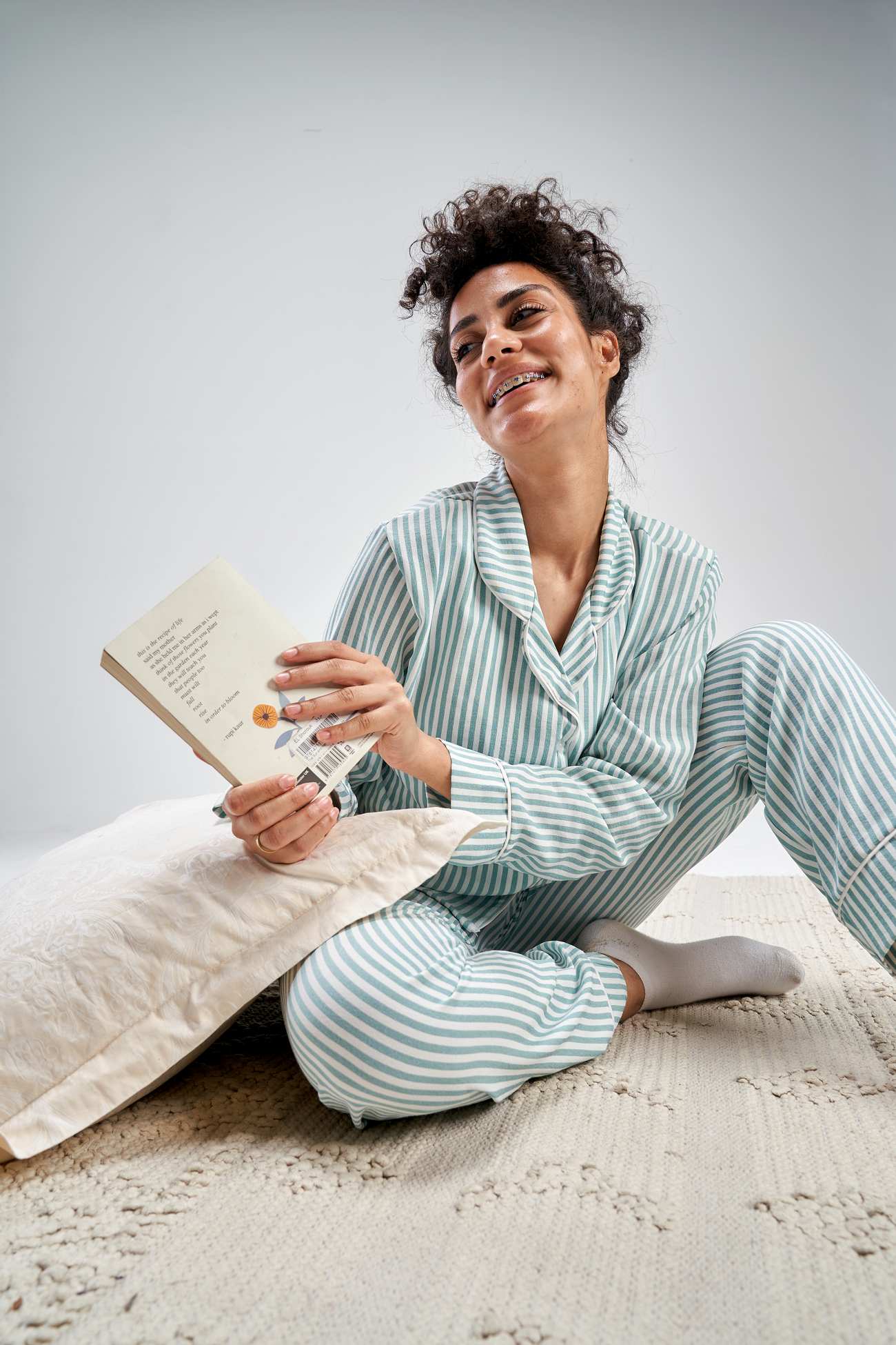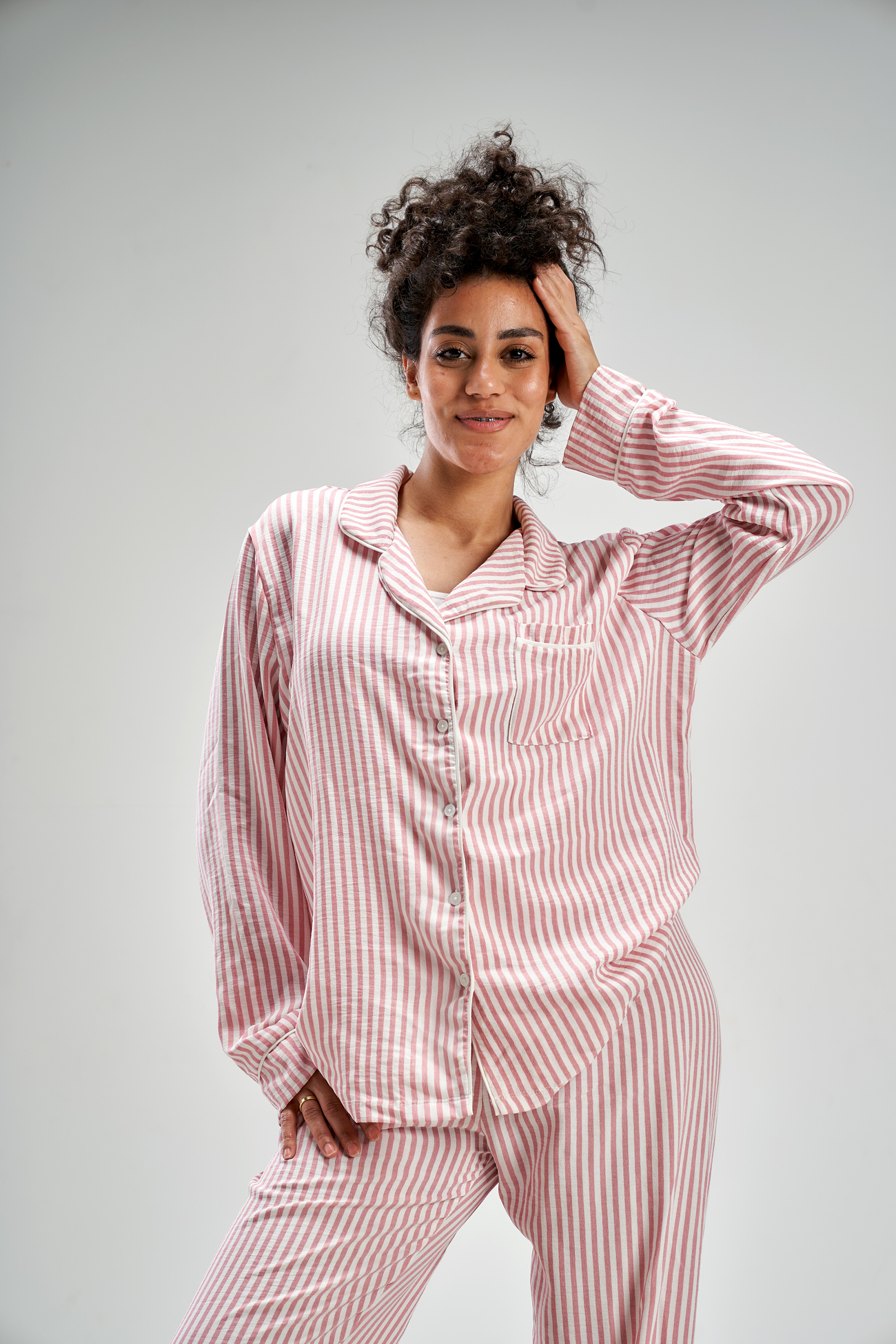 Some PJs just get it right. This set has that effortless, throw-on vibe with a button-down top and comfy straight-leg pants